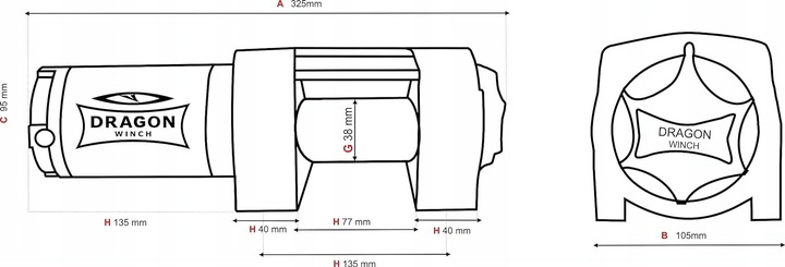 - Размеры лебедки (ДхШхВ): 280 x 100 x 110 мм
