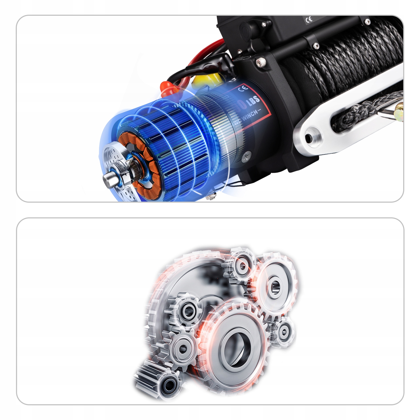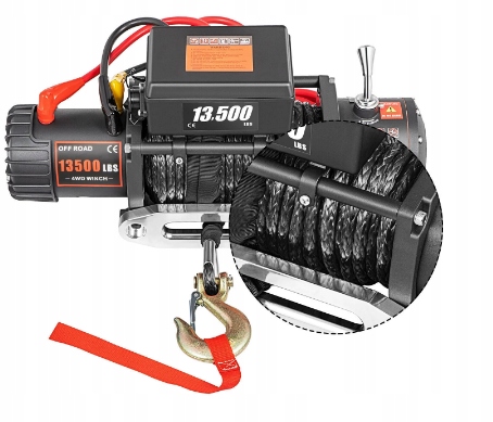 Мы предлагаем электрическую лебедку грузоподъемностью 13 500 фунтов (6,2 т) с синтетическим тросом.