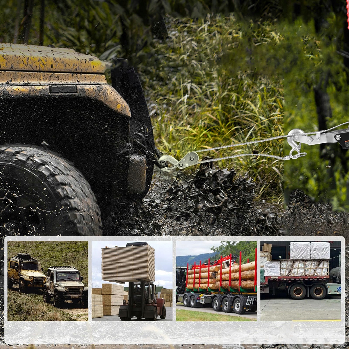 Для автомобилей, сельского хозяйства, лодок, сада или кемпинга: эта ручная таль представляет собой простое и технически надежное решение, а благодаря легкой сборке ее можно установить в любом месте всего за несколько минут. Ручной подъемник можно использовать для перемещения срубленных деревьев, буксировки транспортных средств, лодок или перемещения грузов.