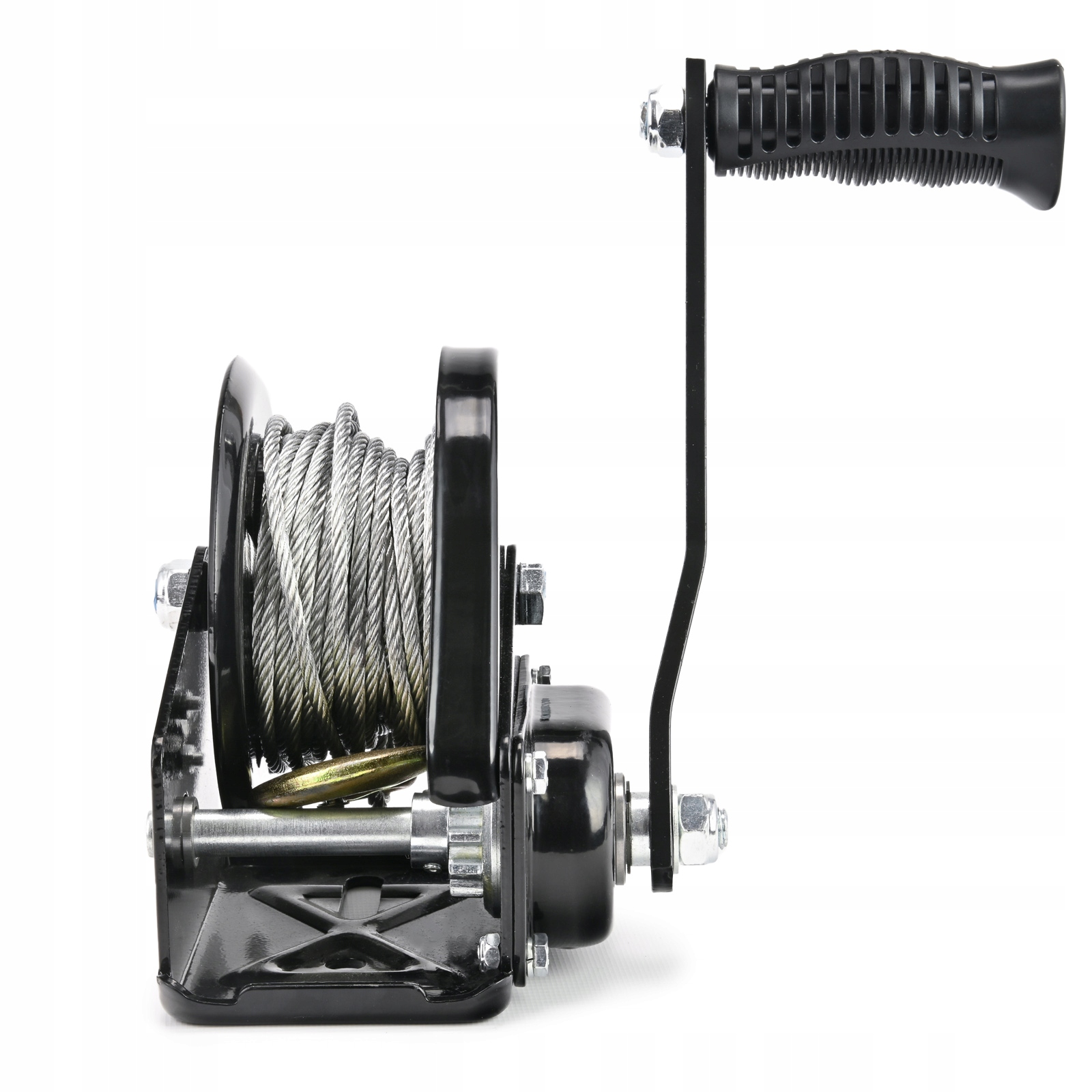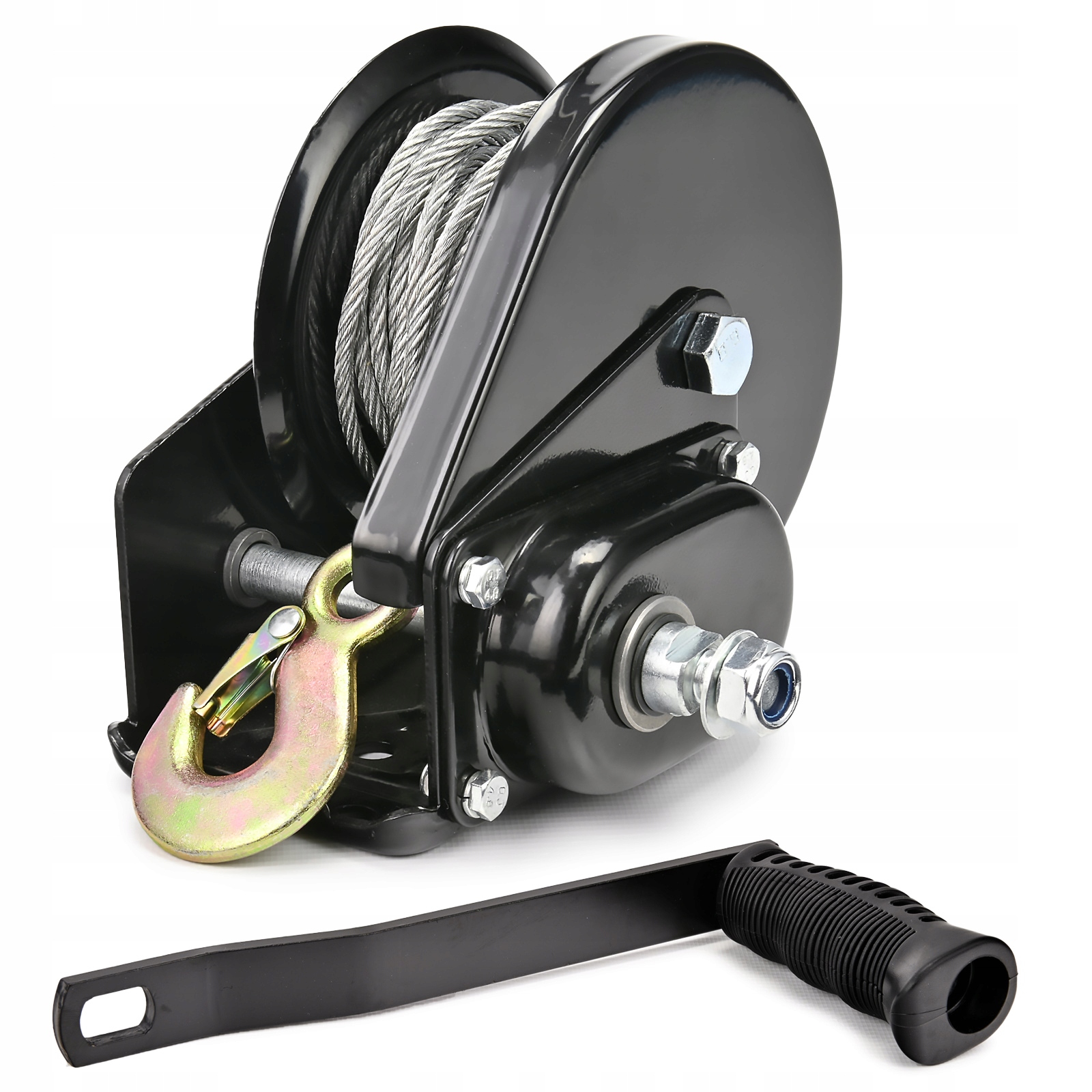 Ручная лебедка изготовлена из высококачественных материалов, обеспечивающих ее долговечность и надежность. Оснащен прочным литым крючком с возвратной пружиной. Оборудование обеспечивает безопасный и безаварийный подъем и опускание предметов.