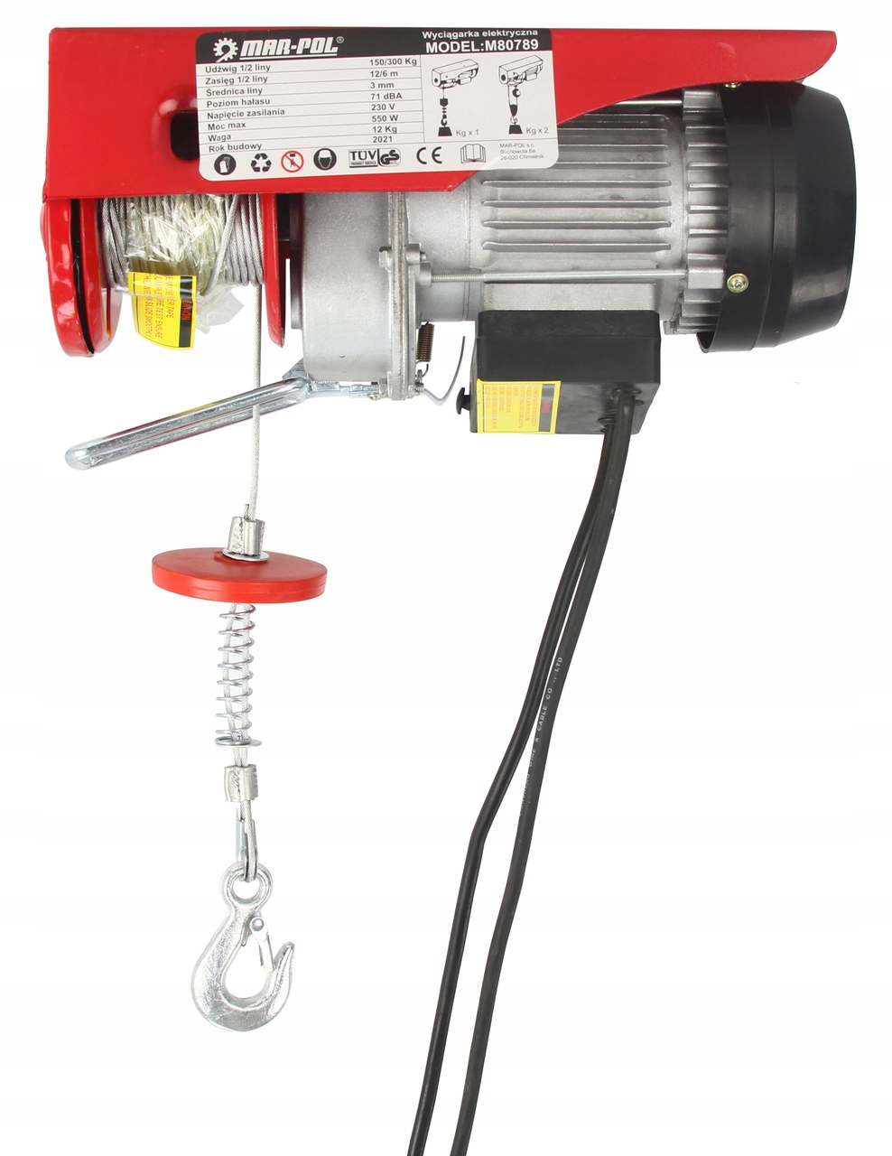 Лебедка имеет высокий стандарт безопасности, благодаря дистанционному управлению с аварийной кнопкой, мощному, экономичному двигателю (550 Вт), тормозу для безопасной остановки груза при желаемой мощности и автоматическому переключателю с немедленной остановкой.