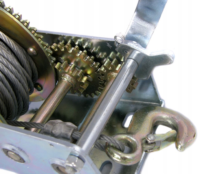 Кривошипная лебедка — многофункциональное устройство, используемое для перемещения и подъема грузов. Лебедка имеет подвижный крюк с защитой, изготовлена из качественных материалов, обладающих соответствующей прочностью, устойчива к погодным условиям. Для управления устройством используется рукоятка. Его можно использовать, среди прочего, для натягивания заборных сеток, связывания, крепления и вытягивания тяжелых и крупных предметов. Имеет предохранитель с пружинной храповой защелкой, изготовленной из закаленной стали.