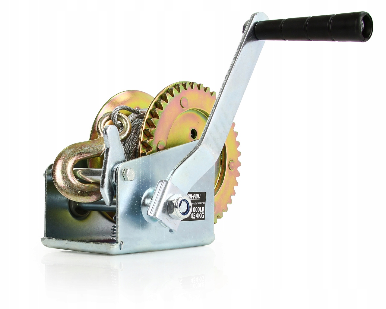 Лебедка изготовлена из качественных материалов, обладающих соответствующей прочностью – конструкционная сталь и литой крюк с возвратной пружиной. Он устойчив к погодным условиям. Устройство управляется рукояткой с храповым механизмом, эти свойства позволяют безопасно вытягивать и опускать предметы. Его можно использовать, среди прочего, для растягивания сеток ограждений, связывания, крепления и перетаскивания тяжелых и крупных предметов, например лодок, квадроциклов и т. д., на прицепы и эвакуаторы.