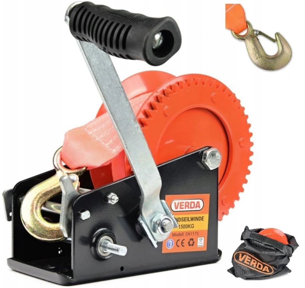 ЛЕБЕДКА РУЧНАЯ ЛЕБЕДКА VERDA 1588 КГ С КОЛЕНЧАТЫМ РЕМЕНЕМ