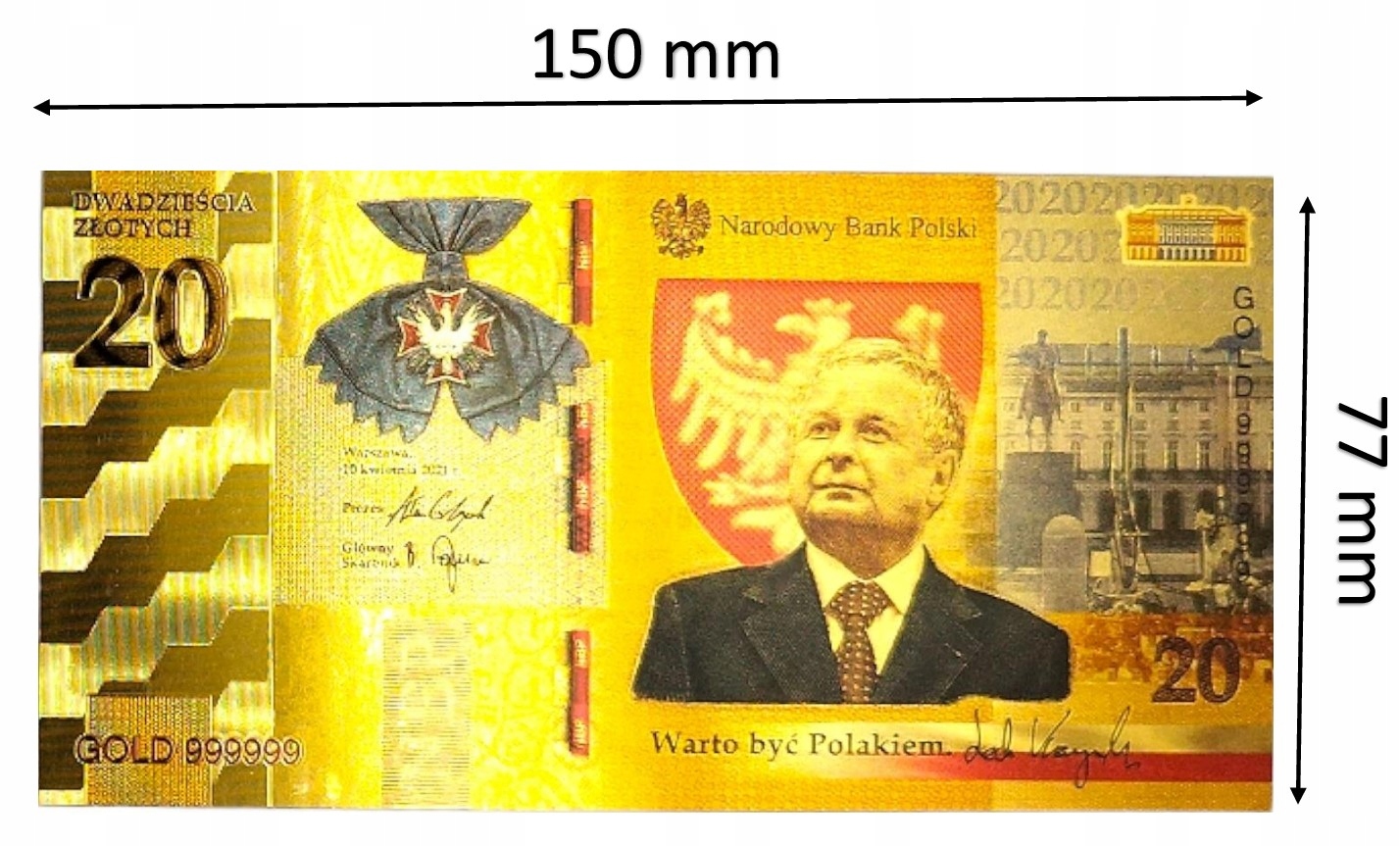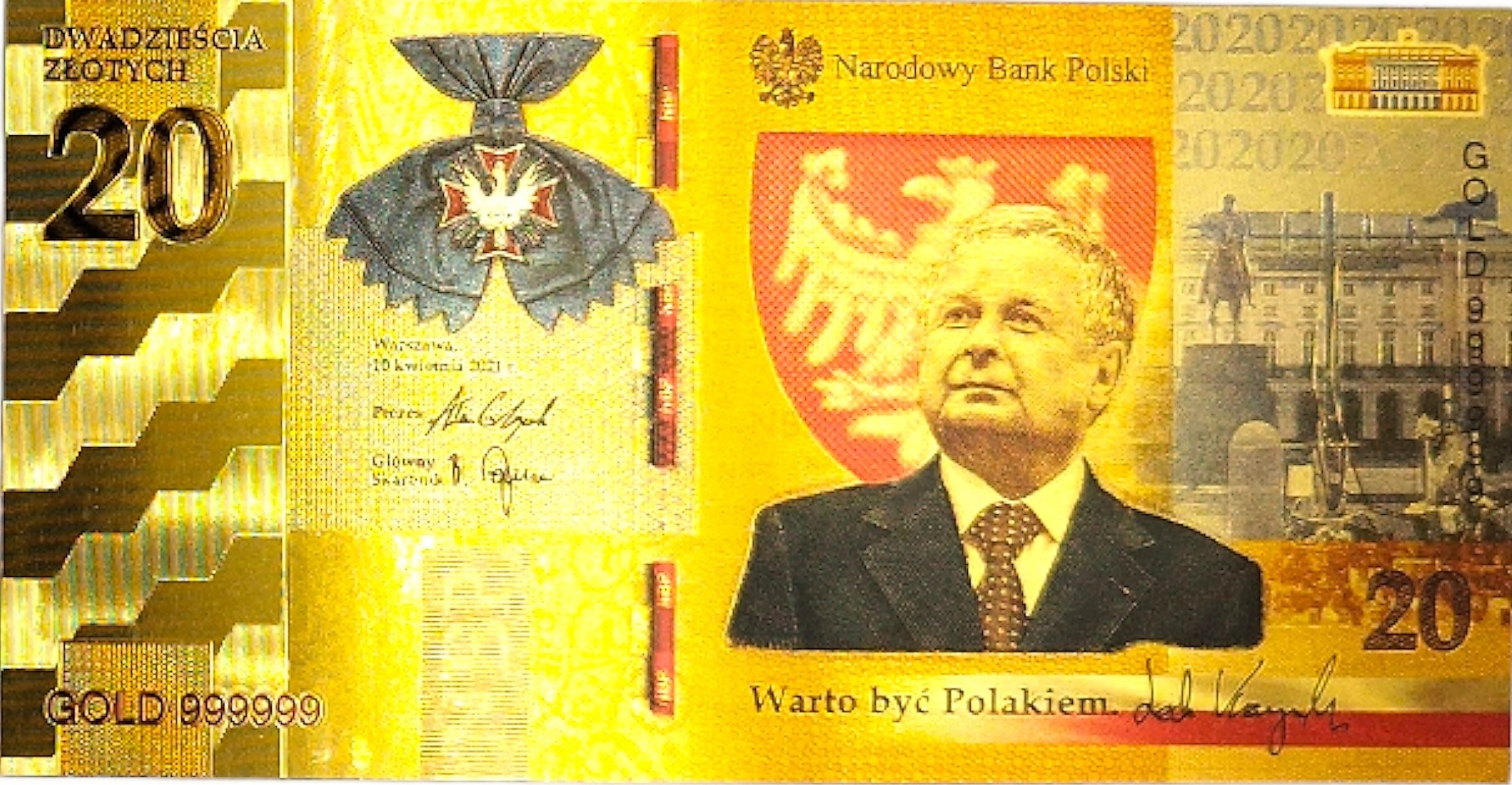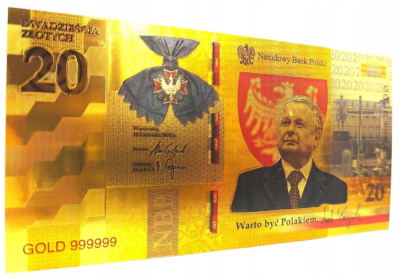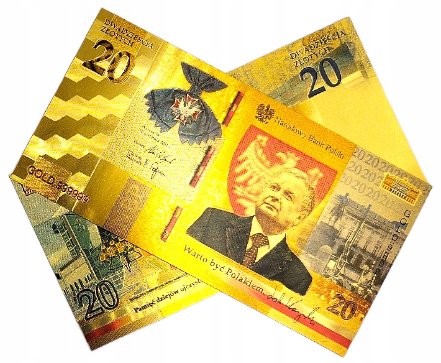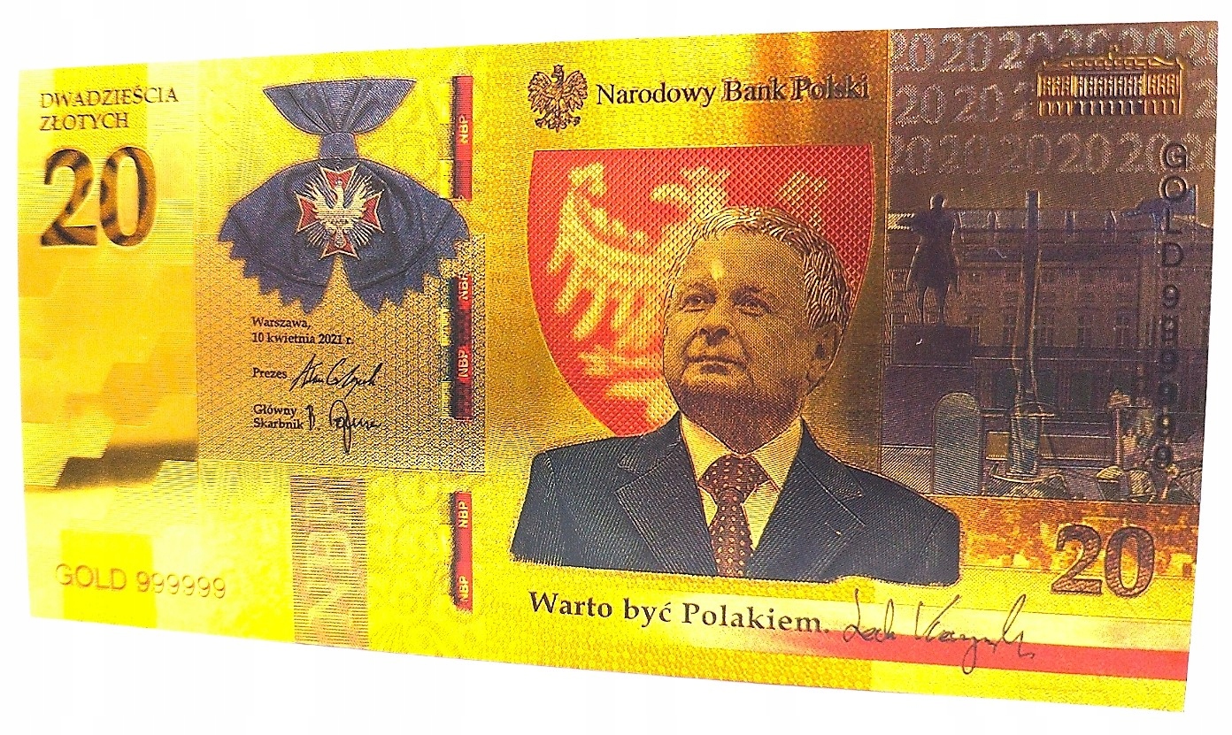 ПОЗОЛОЧЕННАЯ БАНКНОТА 20 ЗЛОТЫХ ЛЕХ КАЧИНЬСКИЙ, СТОИТ БЫТЬ ПОЛЬСКИМ