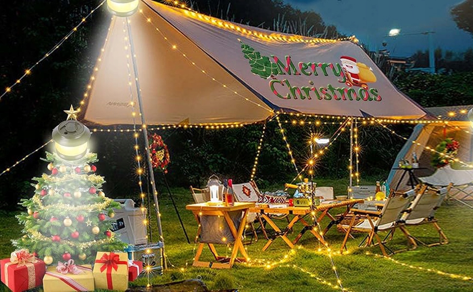 🏕 -top -Up лампы: лампа, много -функциональное устройство для кемпинга, которое сочетает в себе функции кемпинговых ламп и света рождественских деревьев. 65,6-футовые огни рождественской елки будут освещать вашу палатку, испуская теплый и нежный свет, напоминающий распределенных звезд, заполняя все окружение теплом и романтизмом.