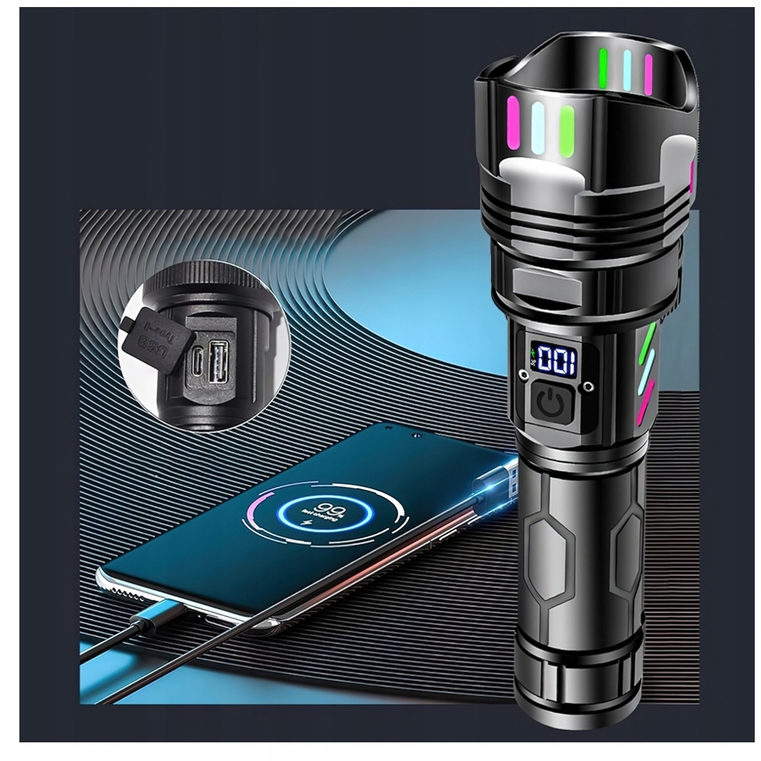 USB -светодиодный тактический фонарик, 30 Вт, батарея 26650, водонепроницаемый