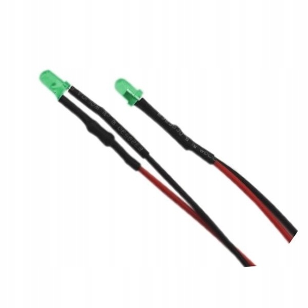 LED 12V 3mm ЗЕЛЕНИЙ З КАБЕЛЕМ x2
