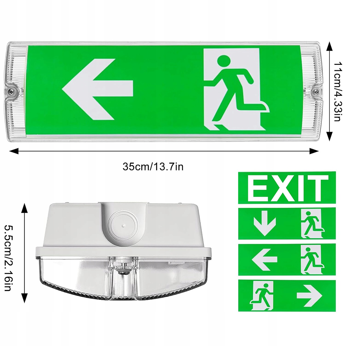 🔎 ✅Светодиодное аварийное освещение мощностью 3 Вт, водонепроницаемое аварийное освещение IP65 со встроенным настенным креплением для аккумуляторной батареи переменного тока 85-265 В — включает 4 пиктограммы аварийного выхода и указатели направления🔎 ✅