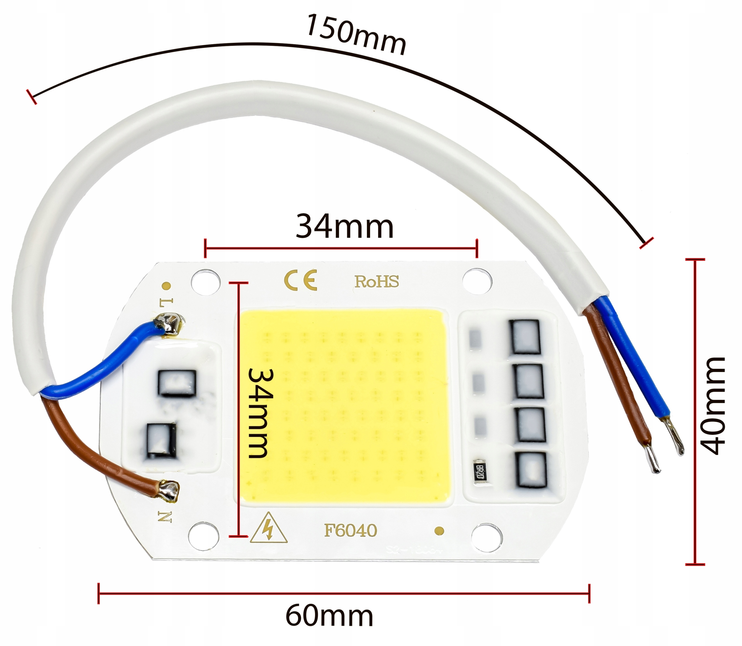 LED 50W 4700LM белый 60x 40mm 230V + провод + паста