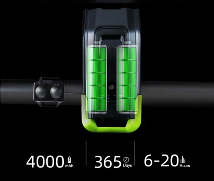 Передняя лампа имеет дисплей, информирующий об уровне заряда аккумулятора. Его можно заряжать с помощью прилагаемого кабеля microUSB.