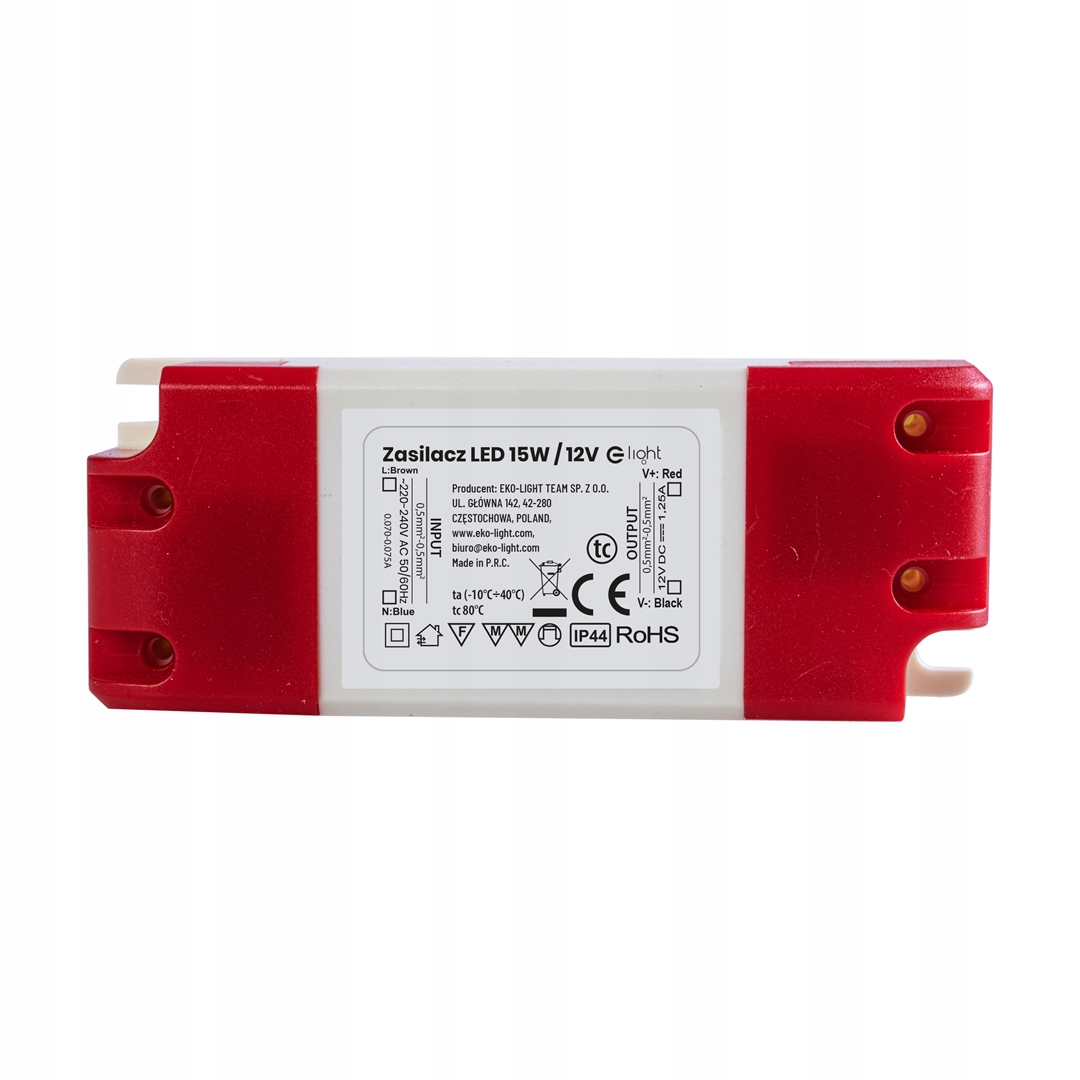 Блок питания для светодиодов IP44 мощностью 15 Вт от EKO-LIGHT EKZAS746 предназначен для работы со светодиодными источниками света, такими как светодиодные ленты, светодиодные лампы или светодиодные модули, требующие напряжение 12 В. Конструкция блока питания обеспечивает надлежащее охлаждение и защиту от поражения электрическим током.