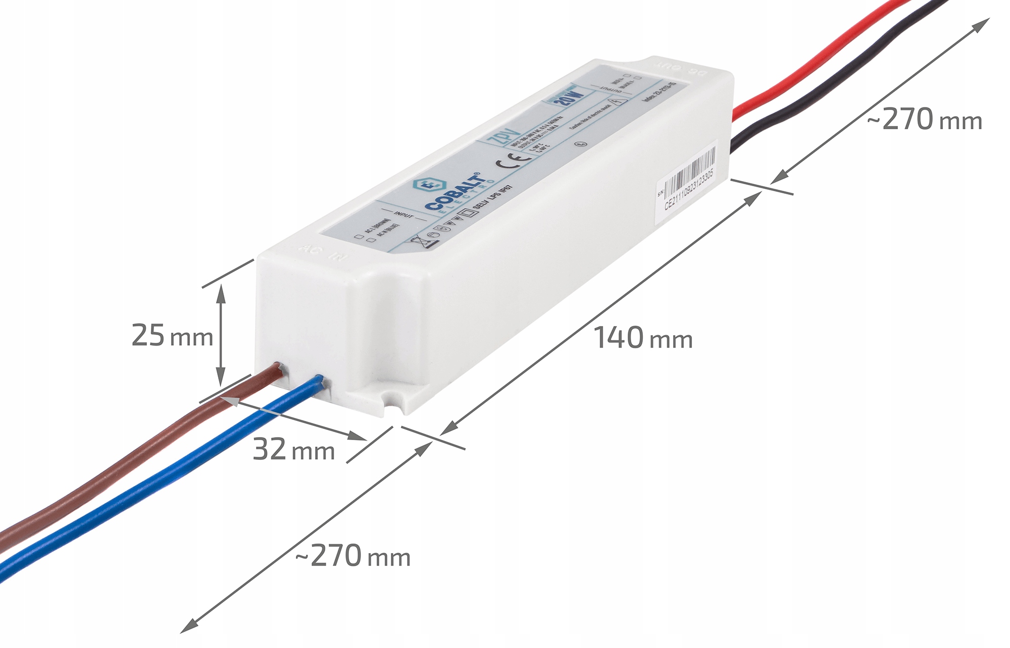 Источник питания для светодиодов CobaltElectro ZPV 24В 20Вт 0,84А IP67 - защита 5 лет