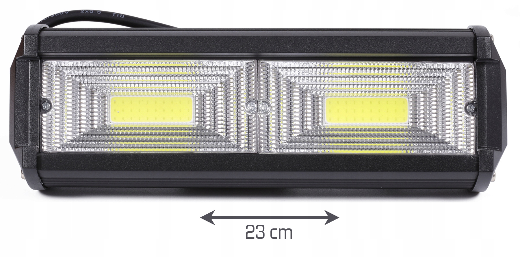 - Количество светодиодов: 2 мощных светодиода COB High Power мощностью 72 Вт.
