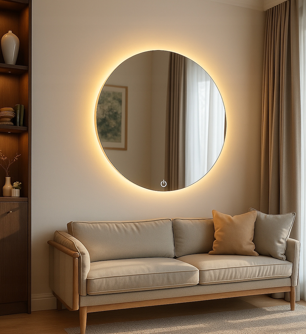 Современное безрамное зеркало с равномерным освещением COB – ноль светодиодных «точек», красивое непрерывное свечение и идеально гладкие края, отполированные на станке с ЧПУ. Элегантность, функциональность и долговечность в одном