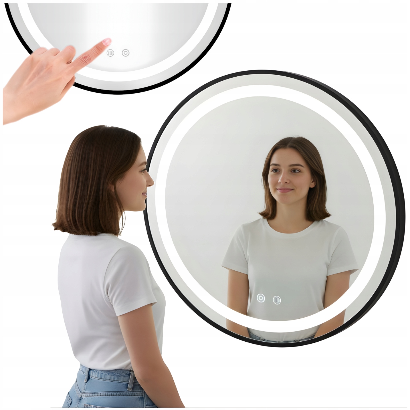 СВЕТОДИОДНОЕ ЗЕРКАЛО ДЛЯ ВАННОЙ 80 СМ, ЧЕРНАЯ РАМКА, СЕНСОРНАЯ РЕГУЛИРОВКА ЯРКОСТИ