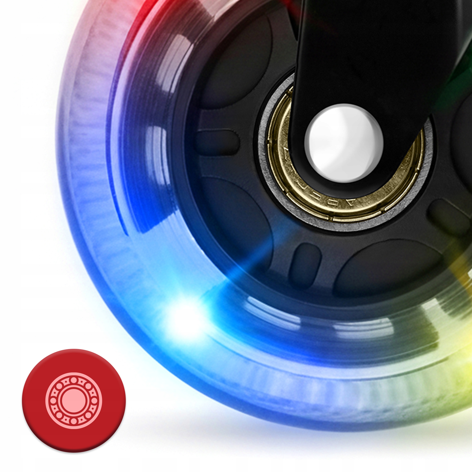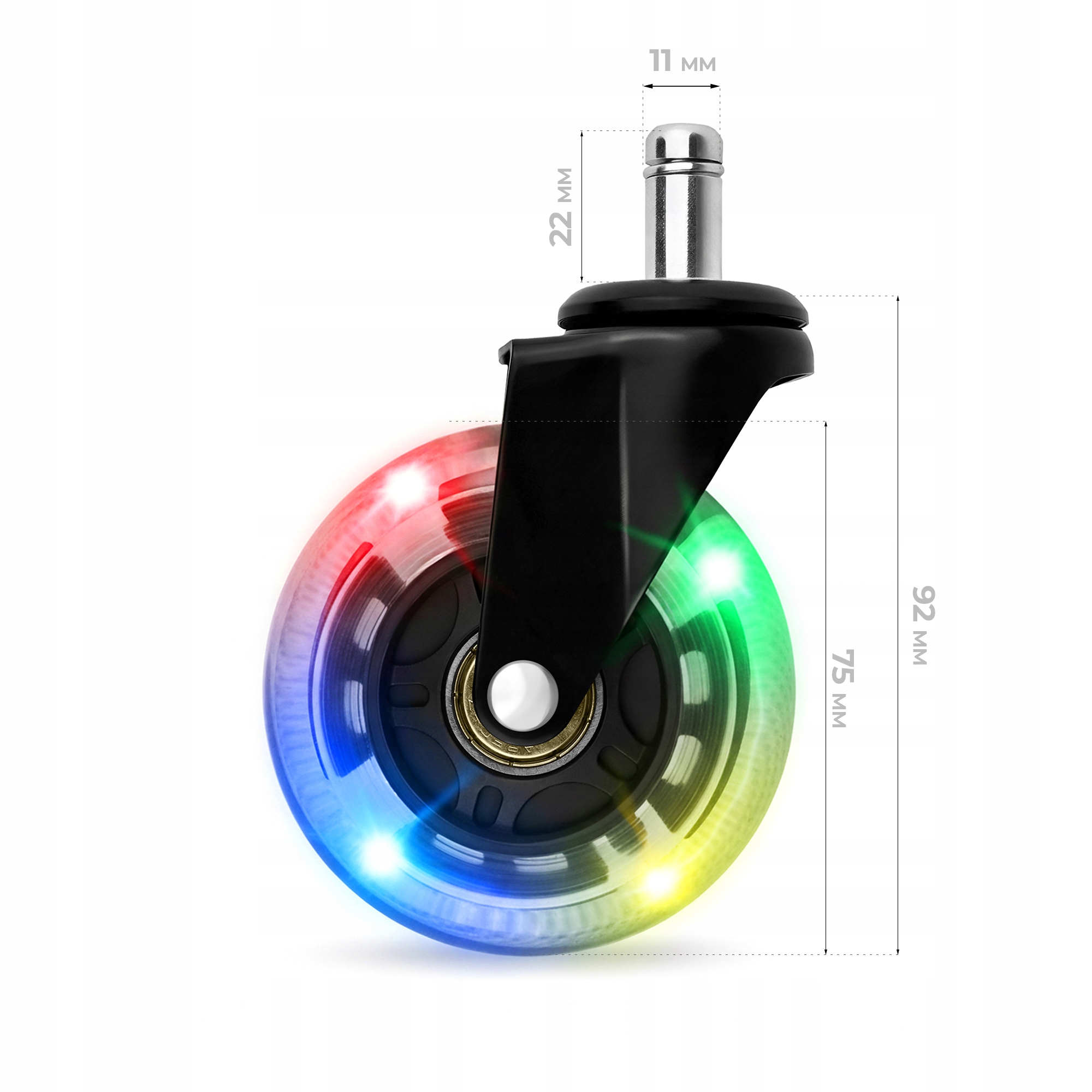 Колеса RollPro Black со светодиодной подсветкой движутся плавно, не оставляя следов. Их мягкое резиновое покрытие защищает деликатные поверхности — от панелей и дерева до плитки и винила. Стальной сердечник обеспечивает исключительную износостойкость.
