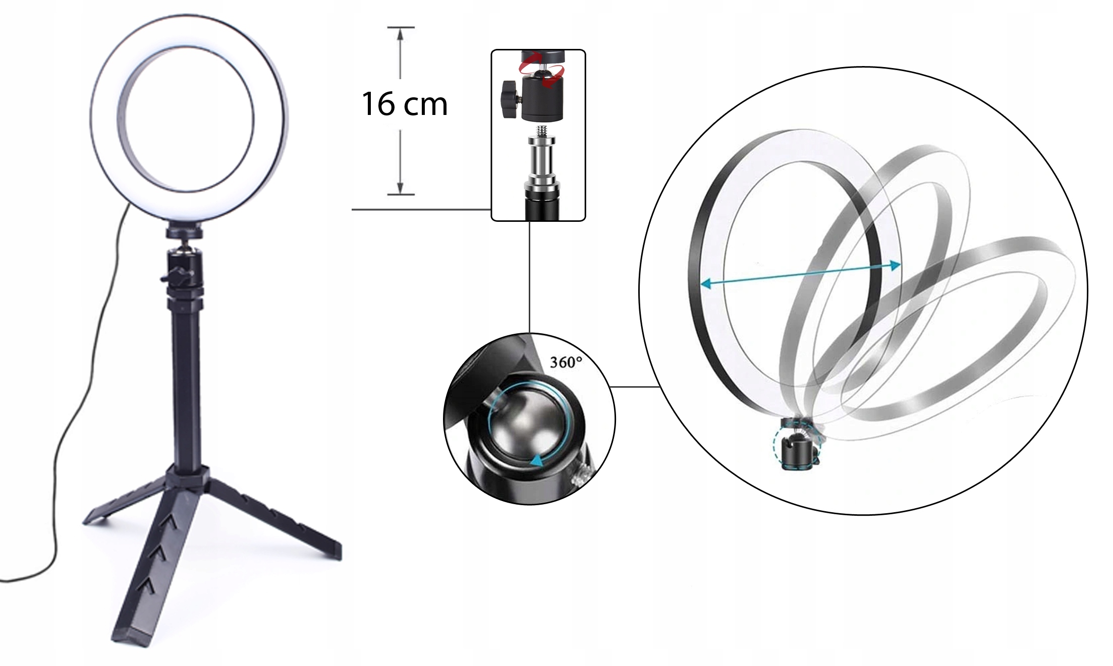 Кольцевая светодиодная лампа идеально подойдет для выделения деталей и естественного вида лица.