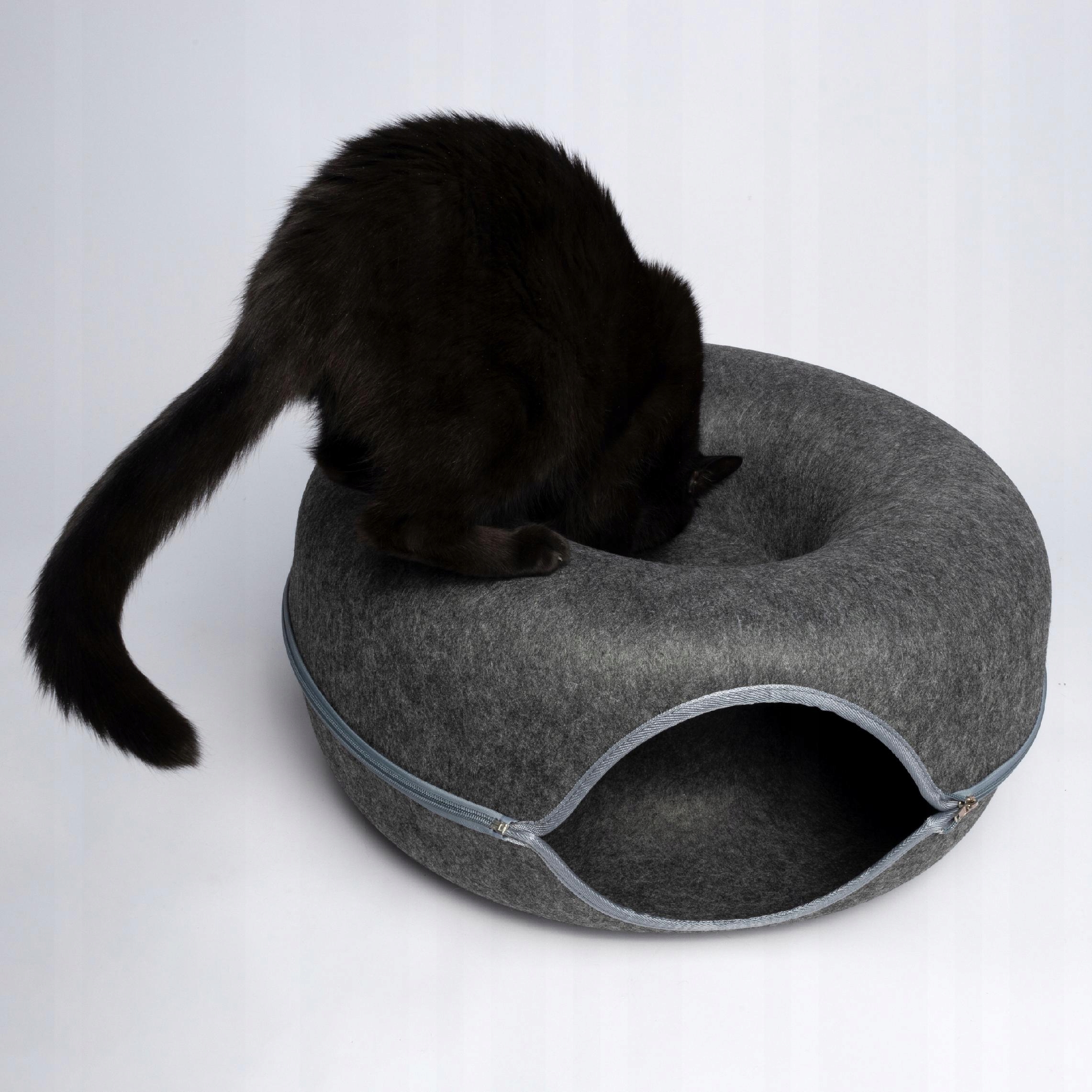 КРУГЛАЯ КРОВАТЬ-ТУННЕЛЬ ДЛЯ КОШКИ DONUT HOUSE 60 СМ ТЕМНО-СЕРЫЙ