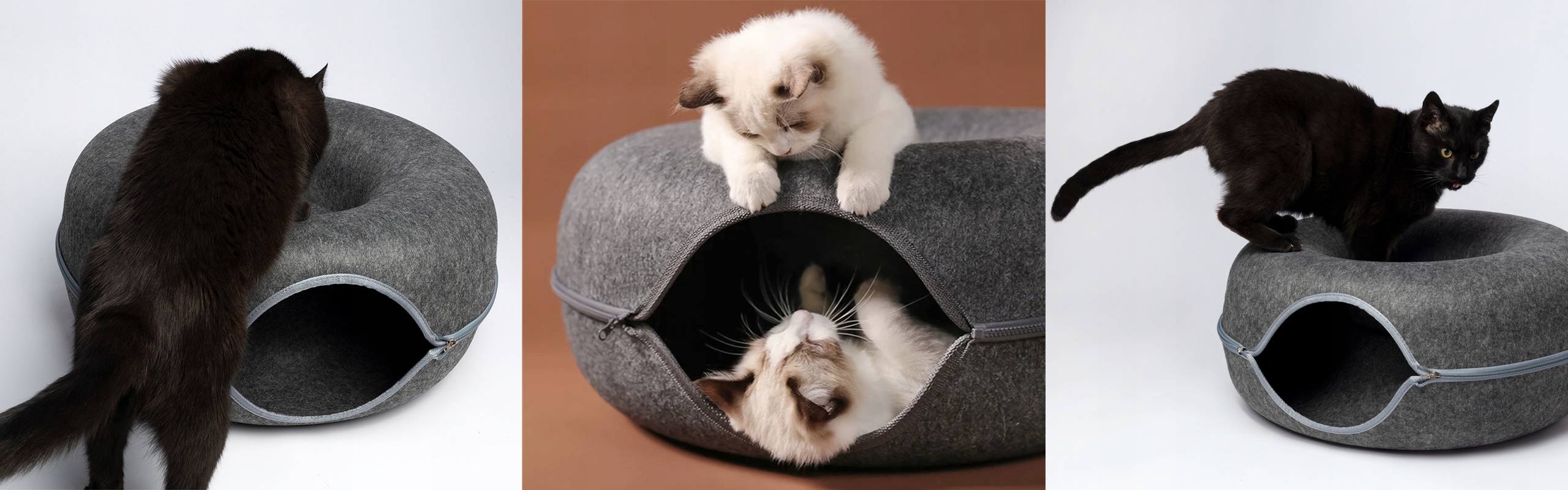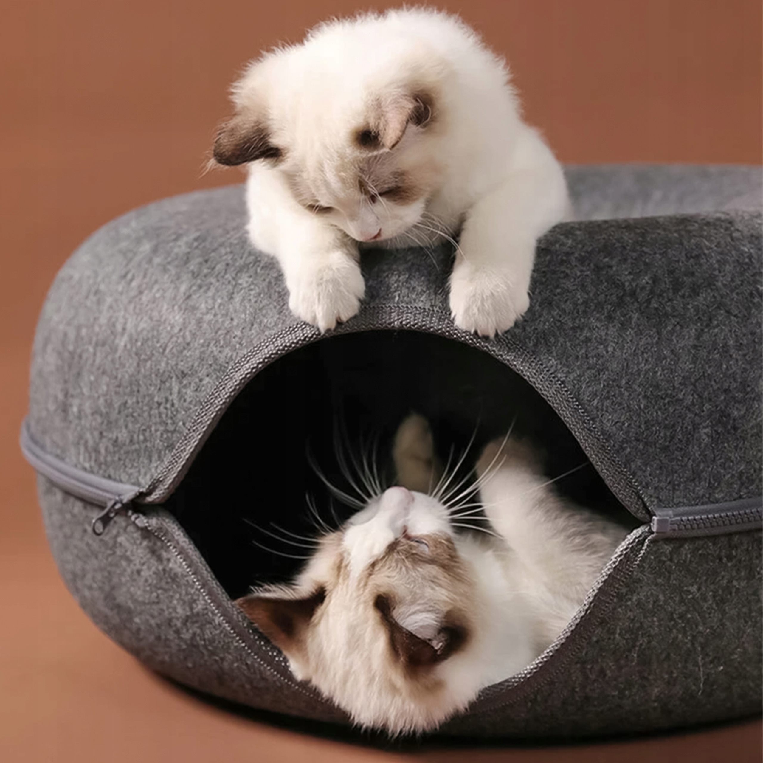 Кровать Donut — это инновационное и стильное решение для вашей кошки, сочетающее в себе функциональность традиционной кровати с забавной туннельной формой. Этот уникальный продукт был разработан с учетом комфорта вашего питомца и радость в душе , предоставляя ему идеальное место для отдыха, игр и укрытия.