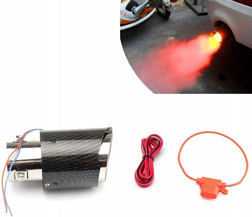 Наконечник выхлопной системы 60 мм с красным светодиодом, карбон