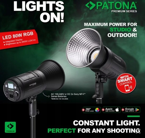 Светодиодная RGB-лампа PATONA мощностью 80 Вт — мощное осветительное решение, разработанное специально для профессиональной фото- и видеосъемки.