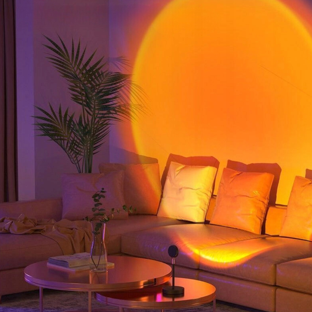 Лампа Sunset очень проста в использовании. Просто подключите USB-кабель к источнику переменного тока или блоку питания и нажмите переключатель. Лампа имеет широкий диапазон цветов и множество параметров отображения, которые можно настроить с помощью пульта дистанционного управления. Его угол регулировки составляет 180°, поэтому проекции можно проецировать на стену или потолок.