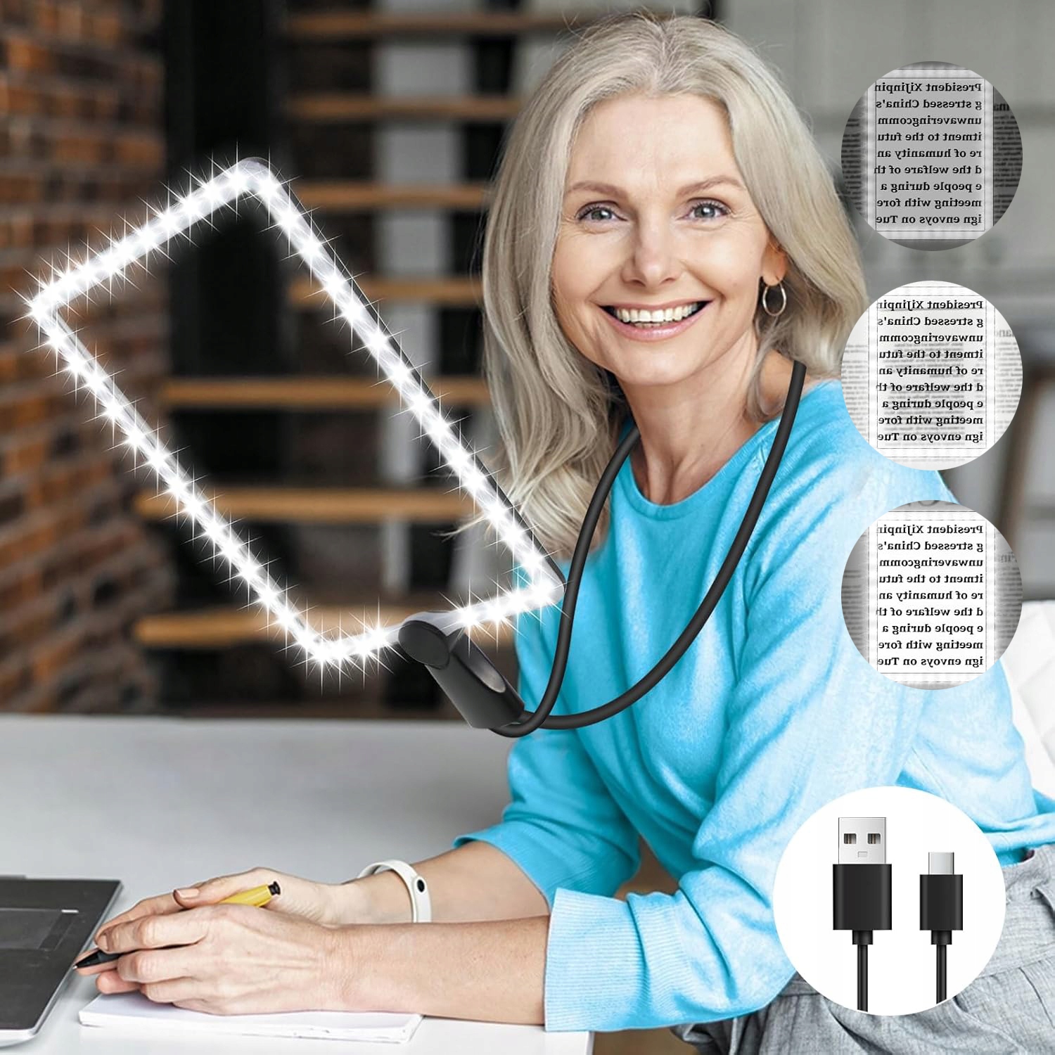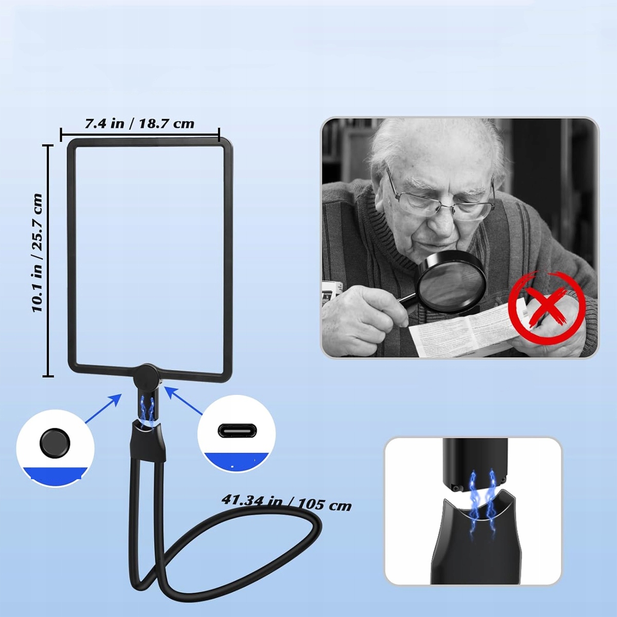 Гибкая гусиная шея позволяет освободить руки. Объектив может быть установлен под каким -либо углом, не беспокоясь о его стабильности. Это расширение стекла для чтения идеально подходит для подарка для людей с нарушениями зрения или визуально, они могут читать, вышивать, шить, ремонтировать, выполнять ручную работу и выполнять другие занятия, не смотря вниз, идеально подходит для долгосрочного использования.