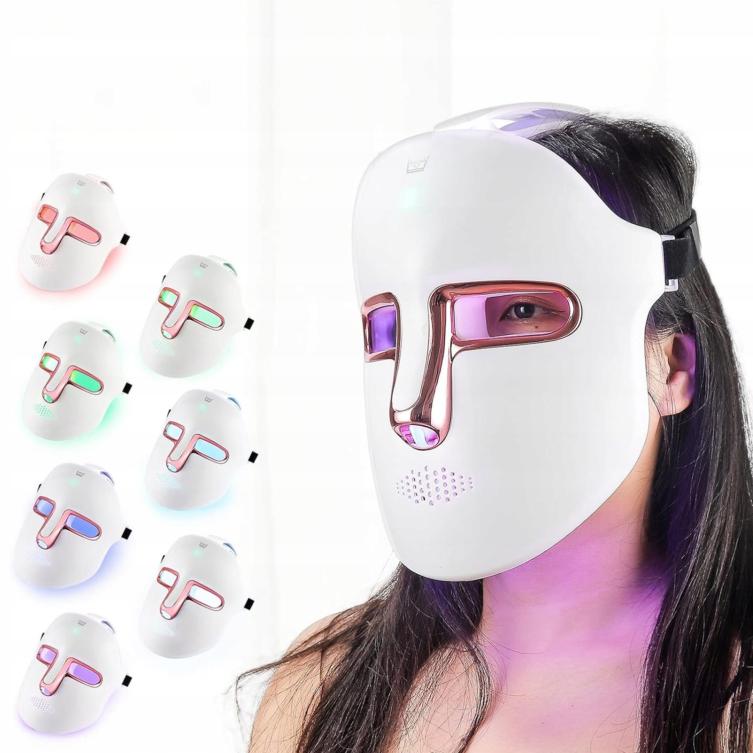 🌈 - Доступно 7 цветов для удовлетворения различных потребностей кожи, синий свет может бороться с бактериями, вызывающими прыщи, зеленый свет может уменьшить воспаление. прыщи, оранжевый свет улучшает тусклую кожу, красный свет помогает бороться со старением, фиолетовый свет способствует лимфодренажу, голубой свет успокаивает подтянутость кожи, а белый свет может ускорить рост и заживление клеток кожи.