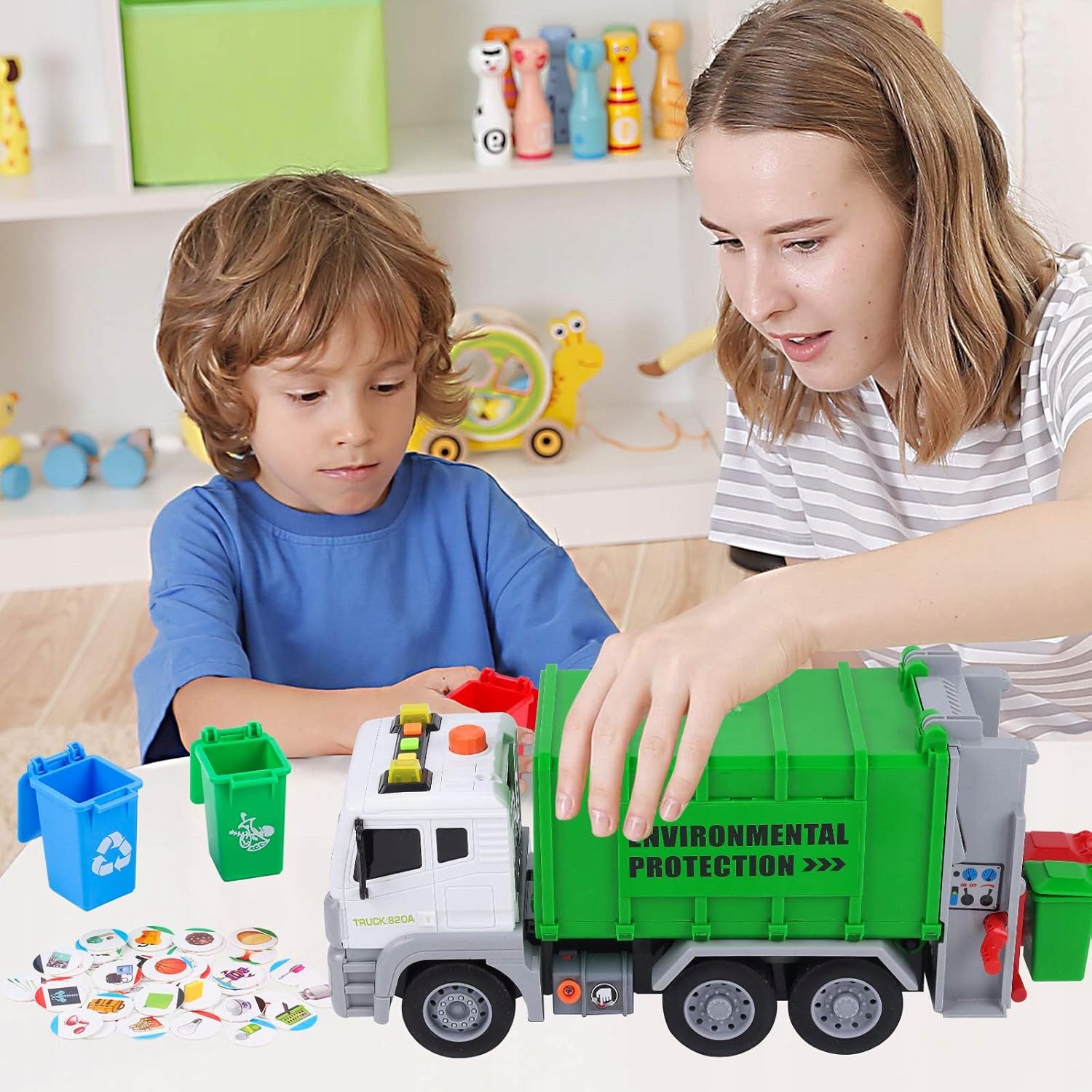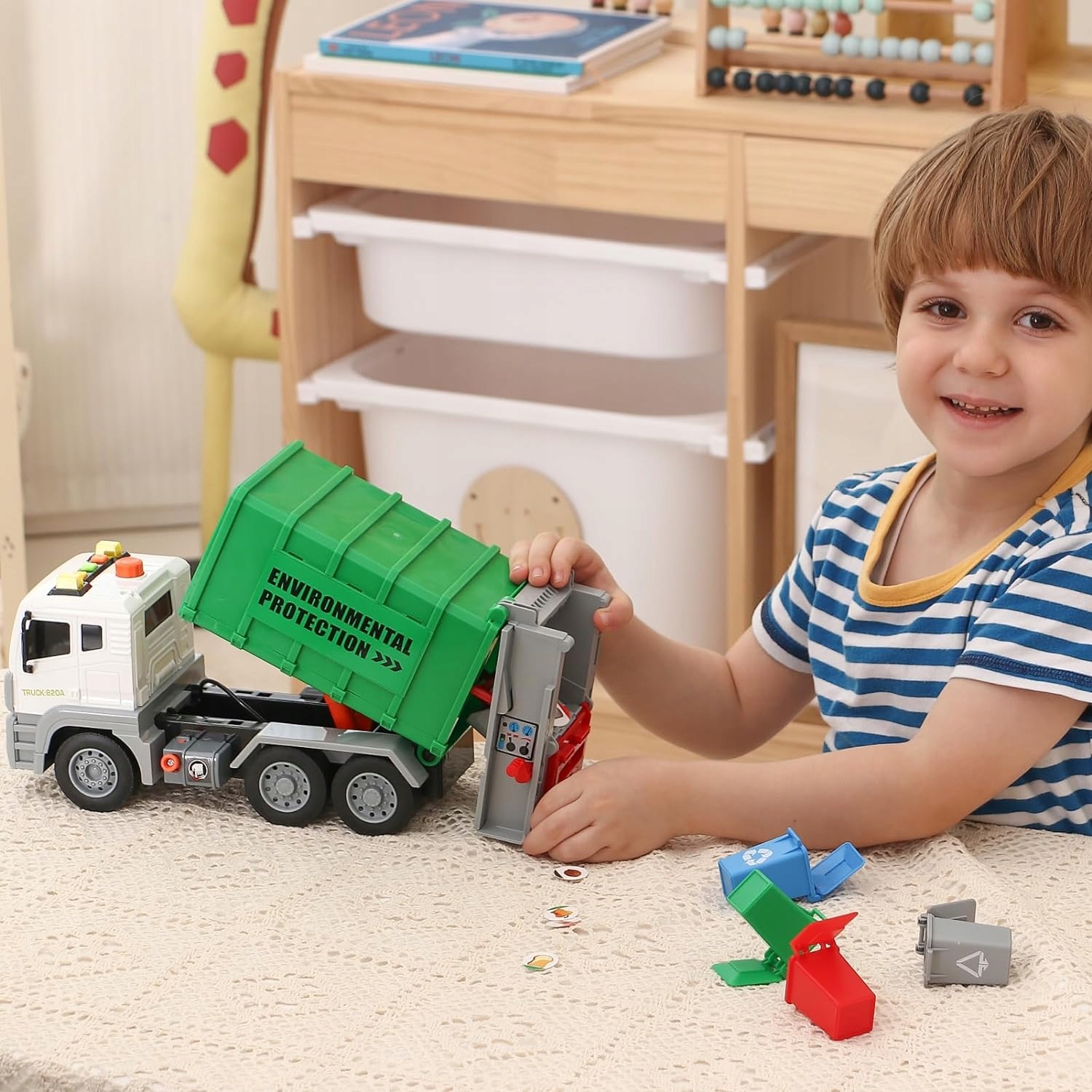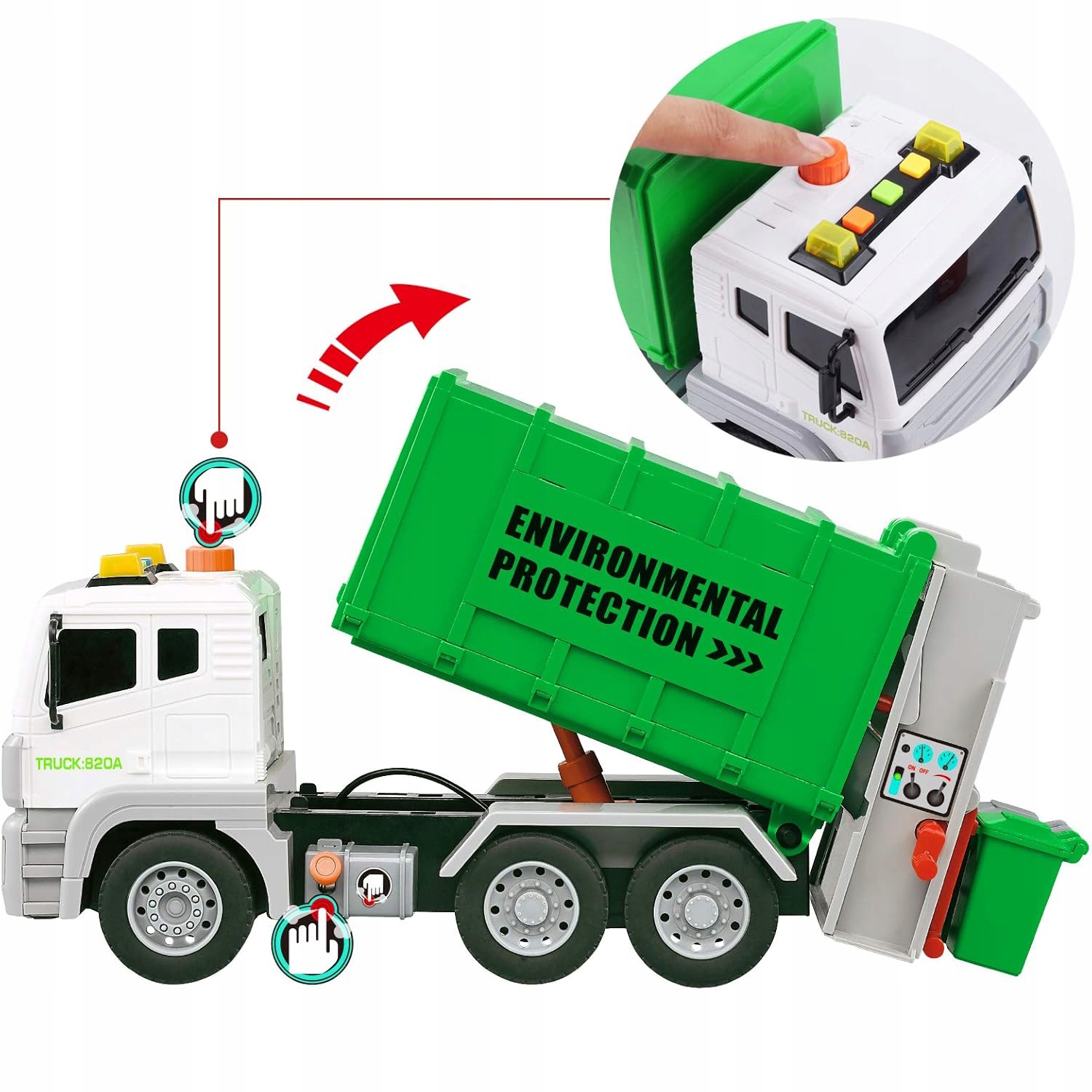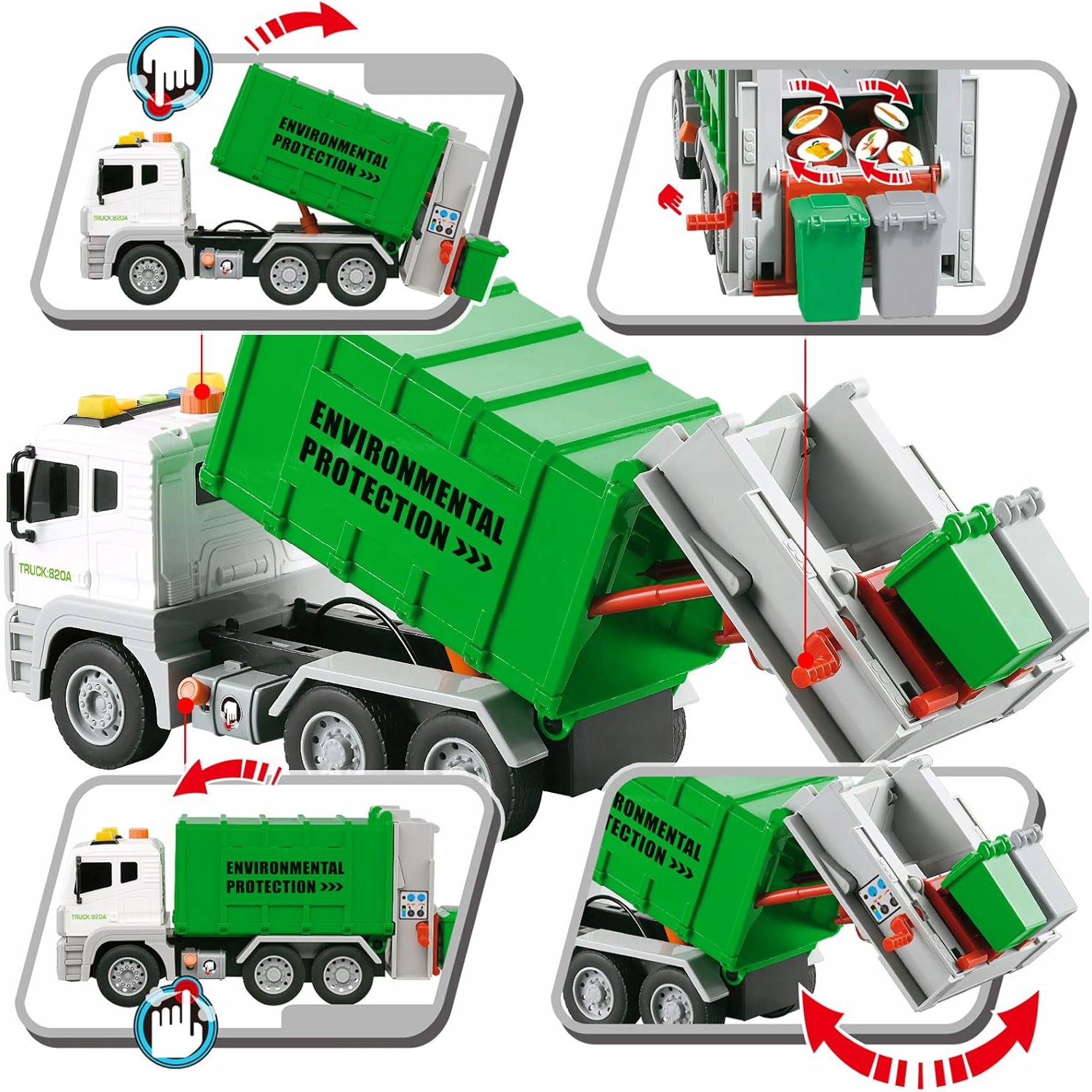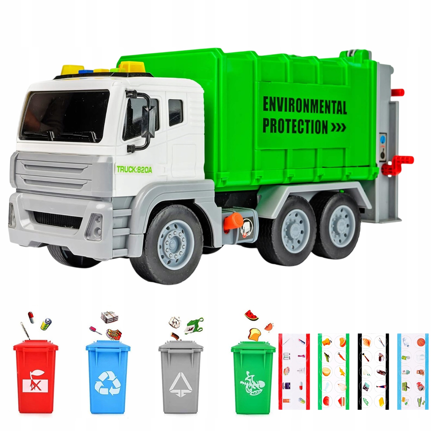 LED ŚMIECIARA Z PODNOŚNIKEM ŚWIATŁO DŹWIĘK + 4 KOSZE NA ŚMIECI