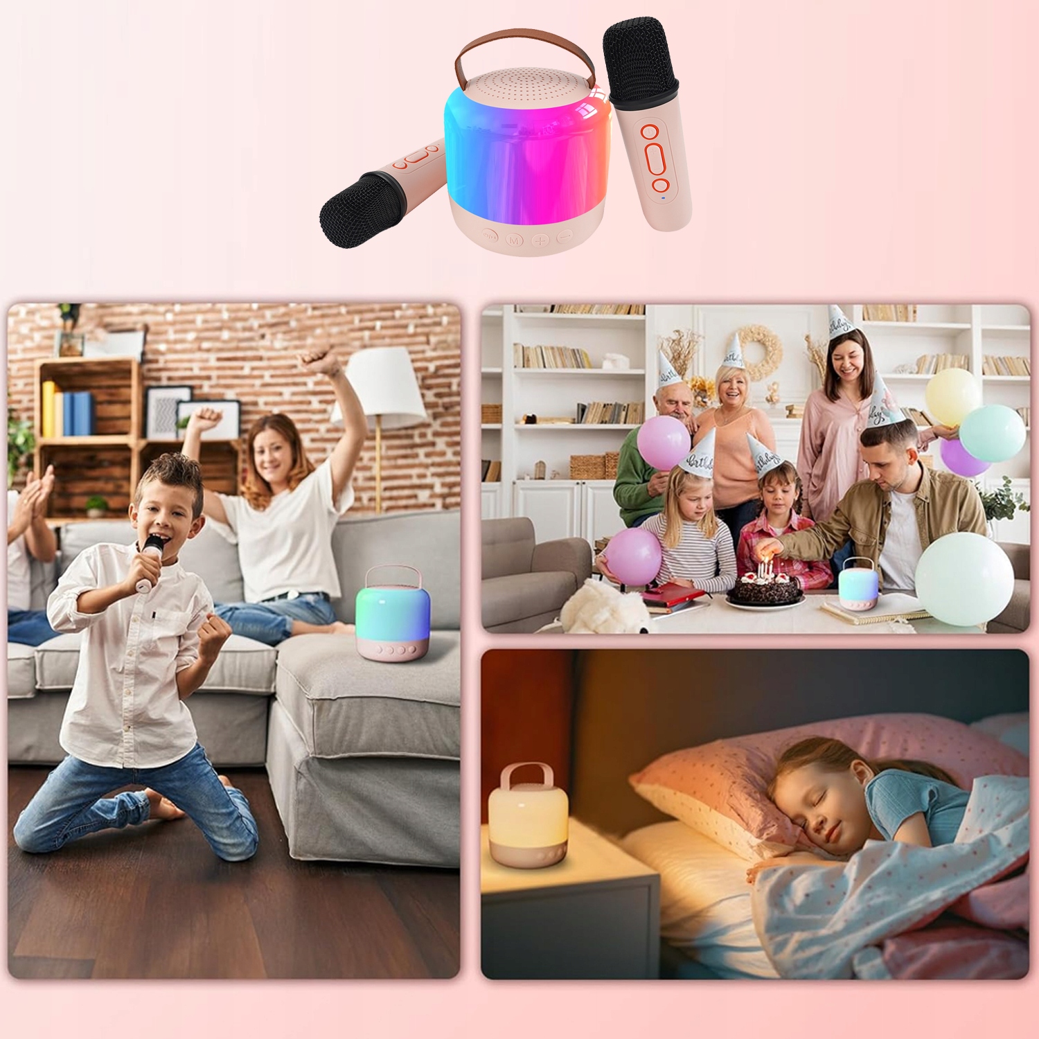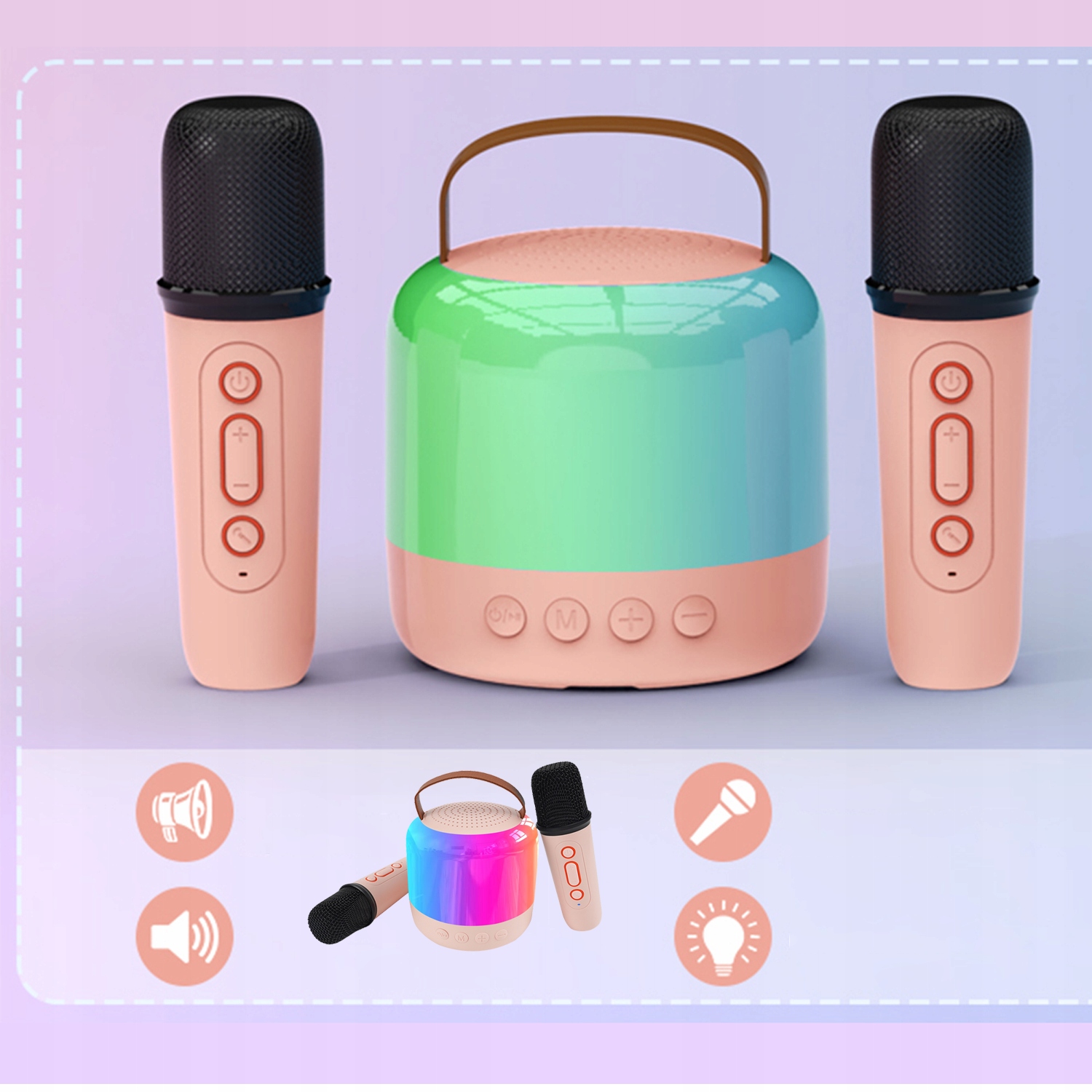 СВЕТОДИОДНАЯ МИНИ-КАРАОКЕ BLUETOOTH ДИНАМИКА В ПОДАРКАХ РОЗОВАЯ ДЛЯ ДЕТЕЙ + 2 МИКРОФОНА