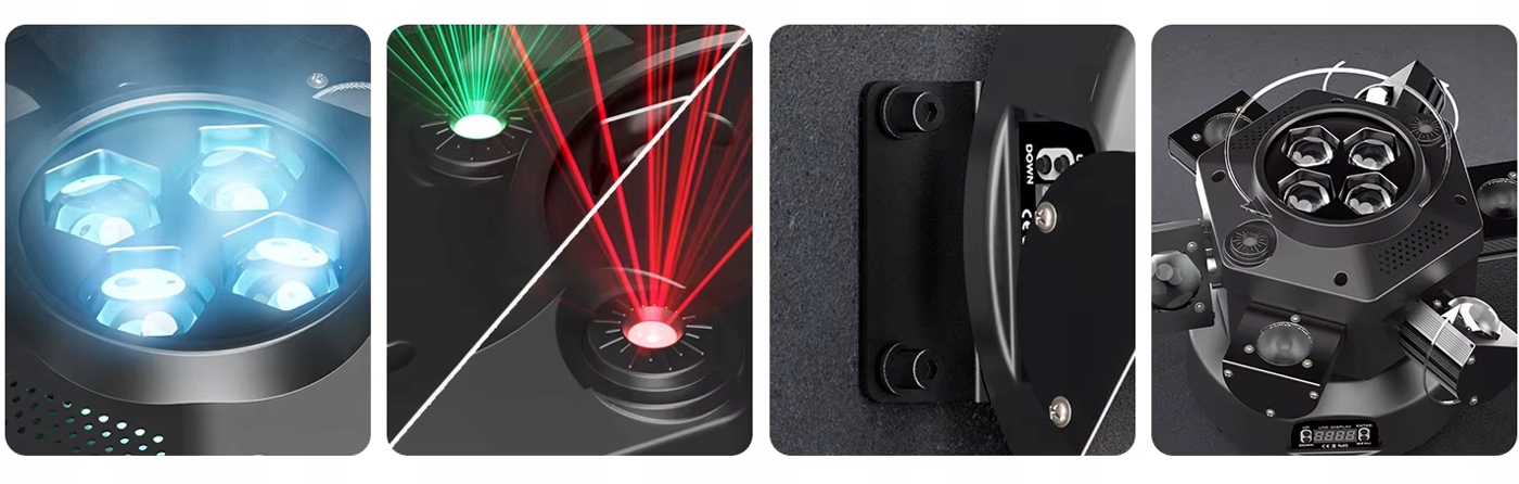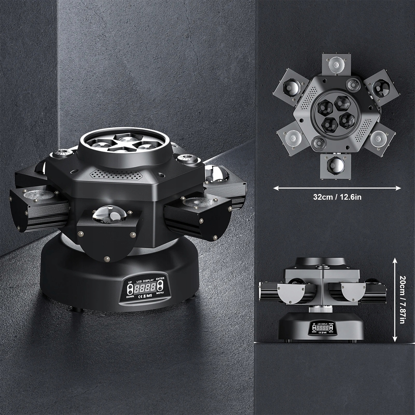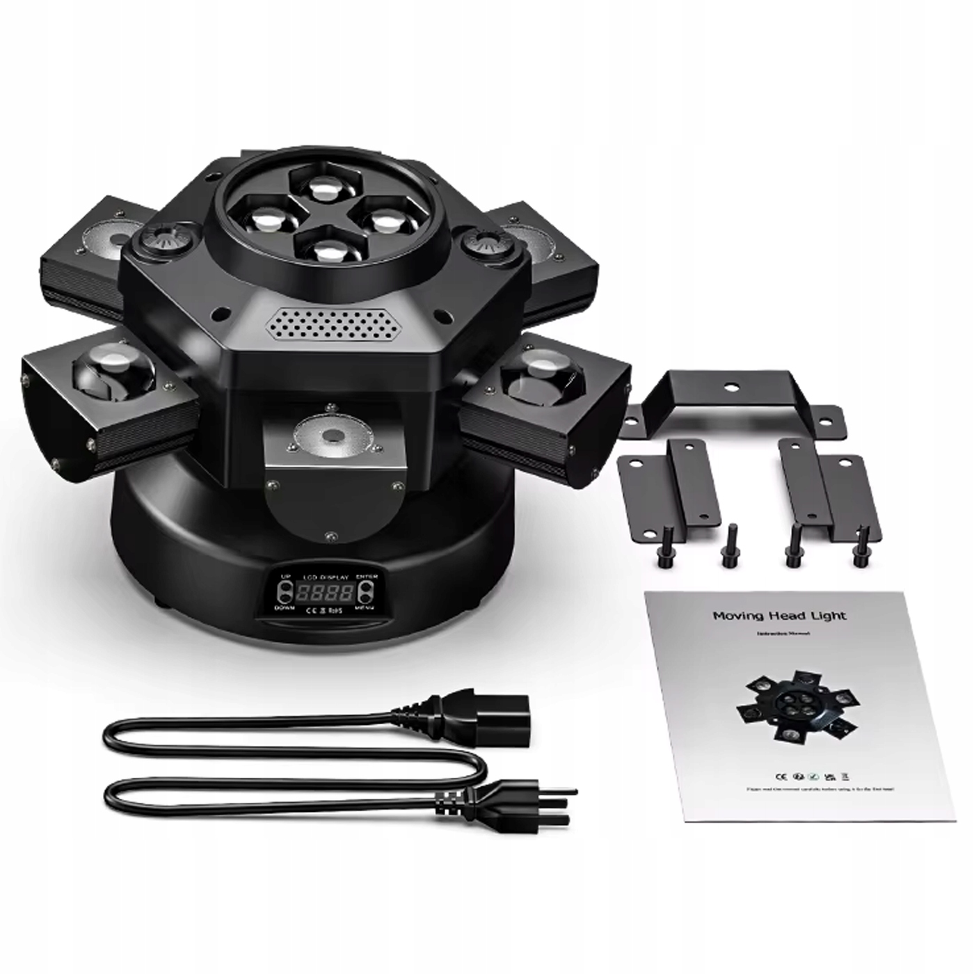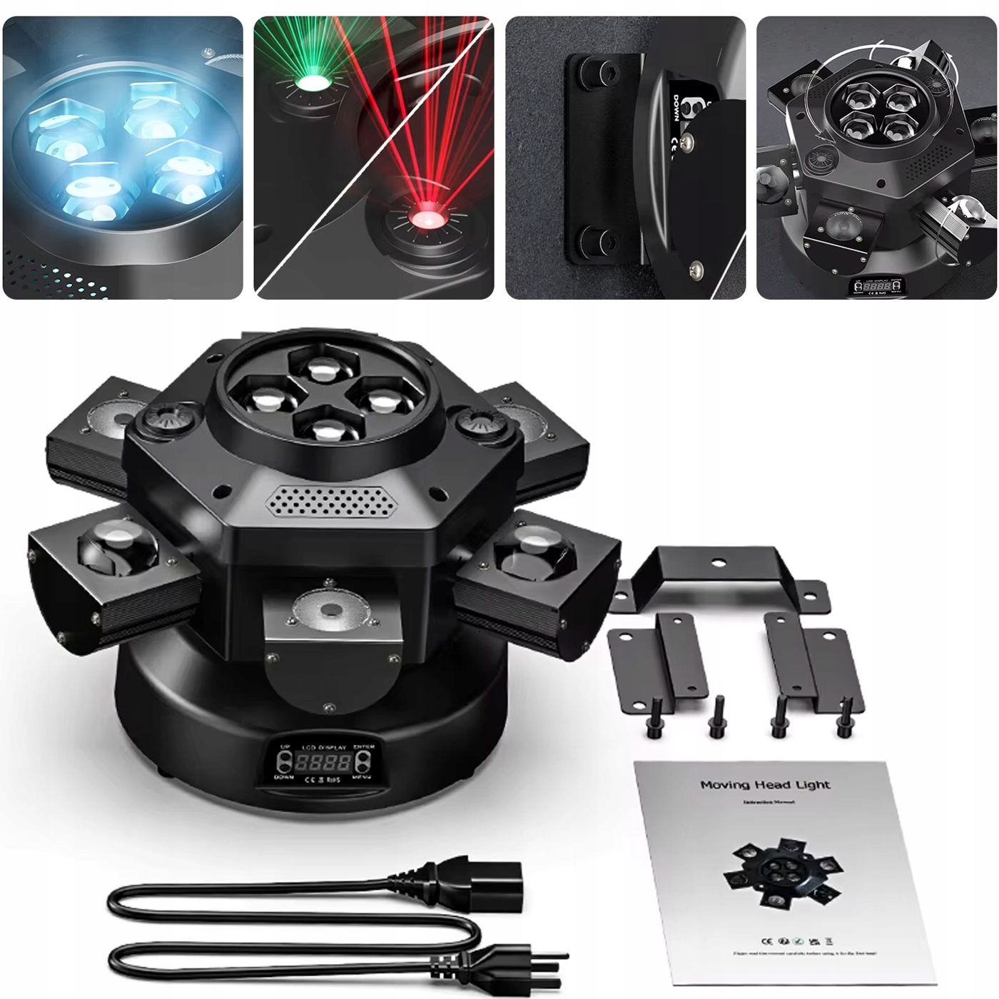 ⭐️ Профессиональная подвижная головка с 6 рычагами, 150 Вт – RGBW 4 в 1 – Эффект пчелиных глаз – Красный и зеленый лазер – DMX512 – 19 каналов ⭐️