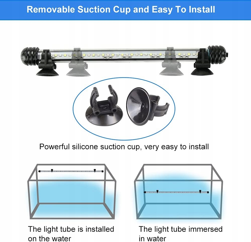 - Изменение 3 цветов - Можно изменить 3 цвета: синий, белый и синий с белым. Высококачественные светодиодные бусины SMD 5050 делают свет очень ярким (делает свет аквариума на 20% ярче, чем у других), энергосберегающим и стабильным цветом, чтобы подчеркнуть ваши водные растения, кораллы или удивительных рыб. Отлично подходит для просмотра ночью.