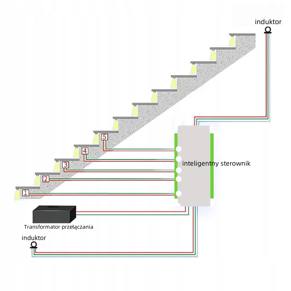 Интеллектуальный лестничный контроллер оснащен двумя PIR-датчиками, которые обнаруживают движение в начале и конце лестницы, автоматически активируя подсветку. Вам не придется ничего переключать – свет появляется сам, когда вам это нужно. Это идеальное решение для домов с детьми, пожилых людей или общественных помещений. Благодаря этому система работает только тогда, когда кто-то поднимается по лестнице, что приводит к значительной экономии энергии. Это также важный элемент безопасности, особенно в условиях ограниченной видимости.