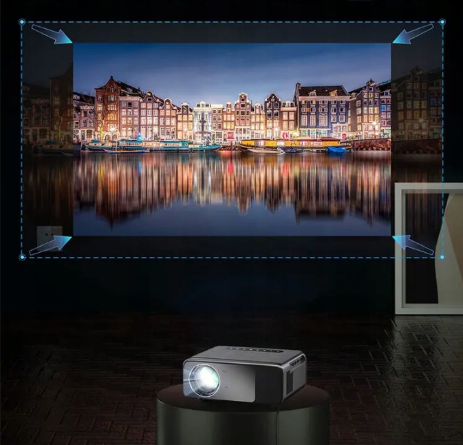 ⭕ Проецируете изображение на разные поверхности? Не беспокойтесь! Проектор имеет автоматическую коррекцию трапецеидальных искажений в диапазоне +/- 50 градусов. Благодаря этому вы получаете идеально центрированное и пропорциональное изображение. Независимо от угла. Нет искажений. Просто идеально!