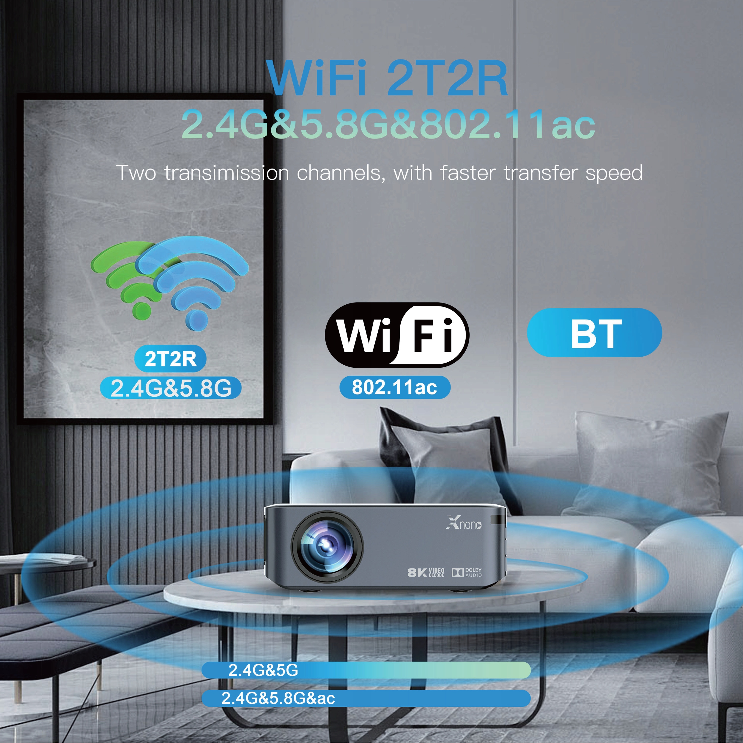 ⭕ Вам нужно воспроизводить видео b> со смартфона или планшет? Нет проблем. Функции Bluetooth и WiFi позволят просто и удобно беспроводное подключить проектор к телефону или компьютеру.