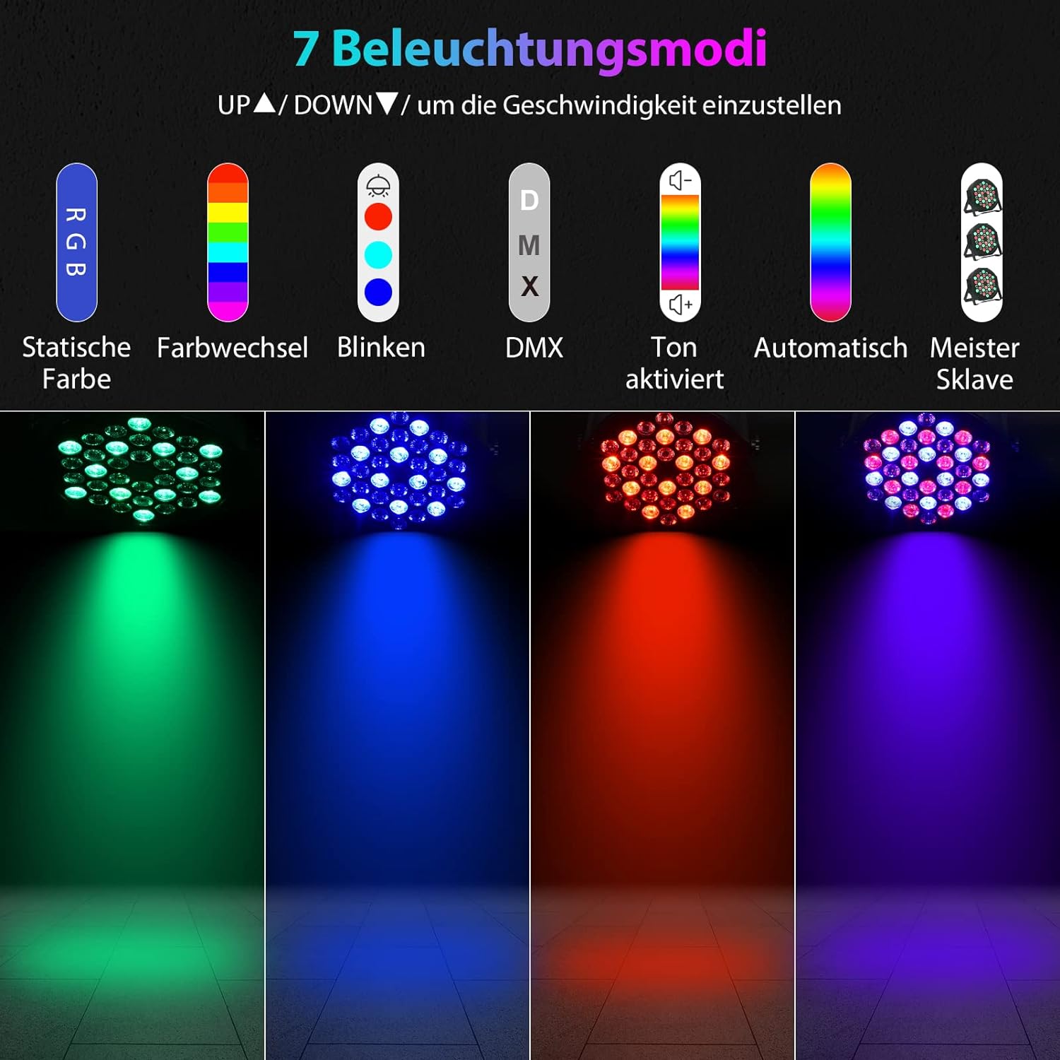 Светодиодное освещение Par 36 LED RGB DMX512 для дискотек с дистанционным управлением, освещение для сцены, 7 режимов освещения, освещение DJ для вечеринки, бара, сцены, фестиваля (2 шт.) [Класс энергопотребления A+++]