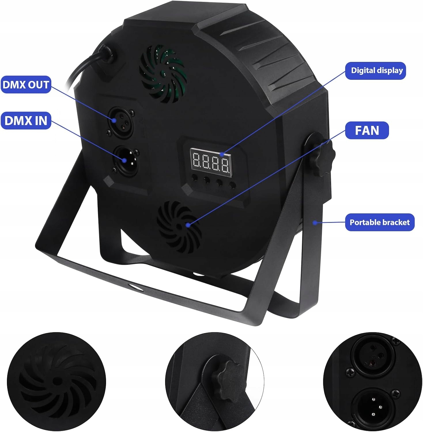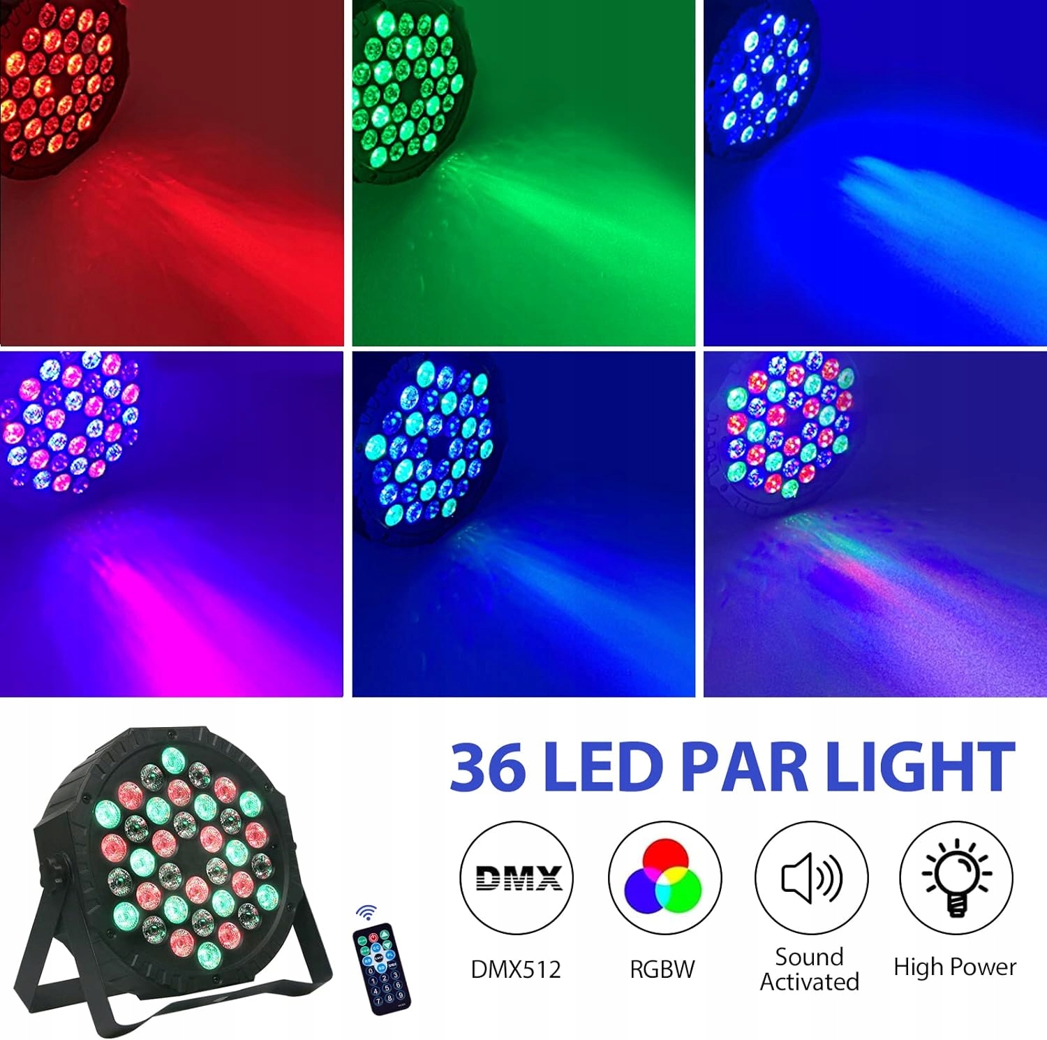 【36 светодиодных светильников для дискотек】 Светильники для вечеринок состоят из высокопроизводительных светодиодов (12 красных, 12 зеленых, 12 синих). Высокая яркость, низкое энергопотребление и яркий цвет, все светодиодные лампы постоянны, срок службы до 10 0000 часов, защита окружающей среды и энергосбережение. 36 светодиодов RGB создают потрясающие красочные световые эффекты за счет смешивания цветов.
