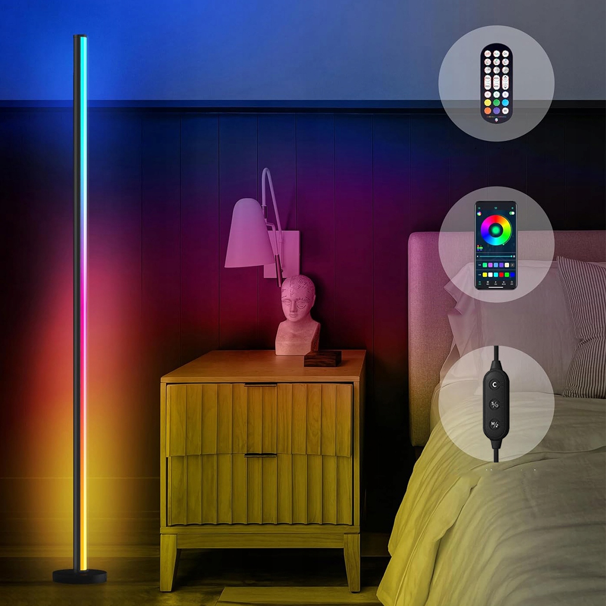 — соединение 3 сегментов. Следуйте инструкциям, чтобы установить торшер RGB без инструментов. Эта лампа не только обеспечивает световое решение, но и идеально подходит для создания настроения. Поместите его в гостиную, спальню, игровую комнату или любую другую комнату, которую вы хотите украсить. Металлические грузики у основания снижают риск опрокидывания.