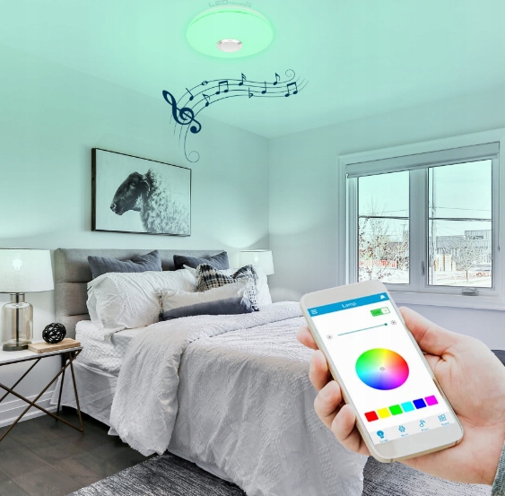 ✅Современный светодиодный потолочный светильник диаметром 40см х 7см со встроенным динамиком BLUETOOTH, работающим по технологии Bluetooth 4.0 + EDR, благодаря которой мы можем воспроизводить музыку с телефона или компьютера.