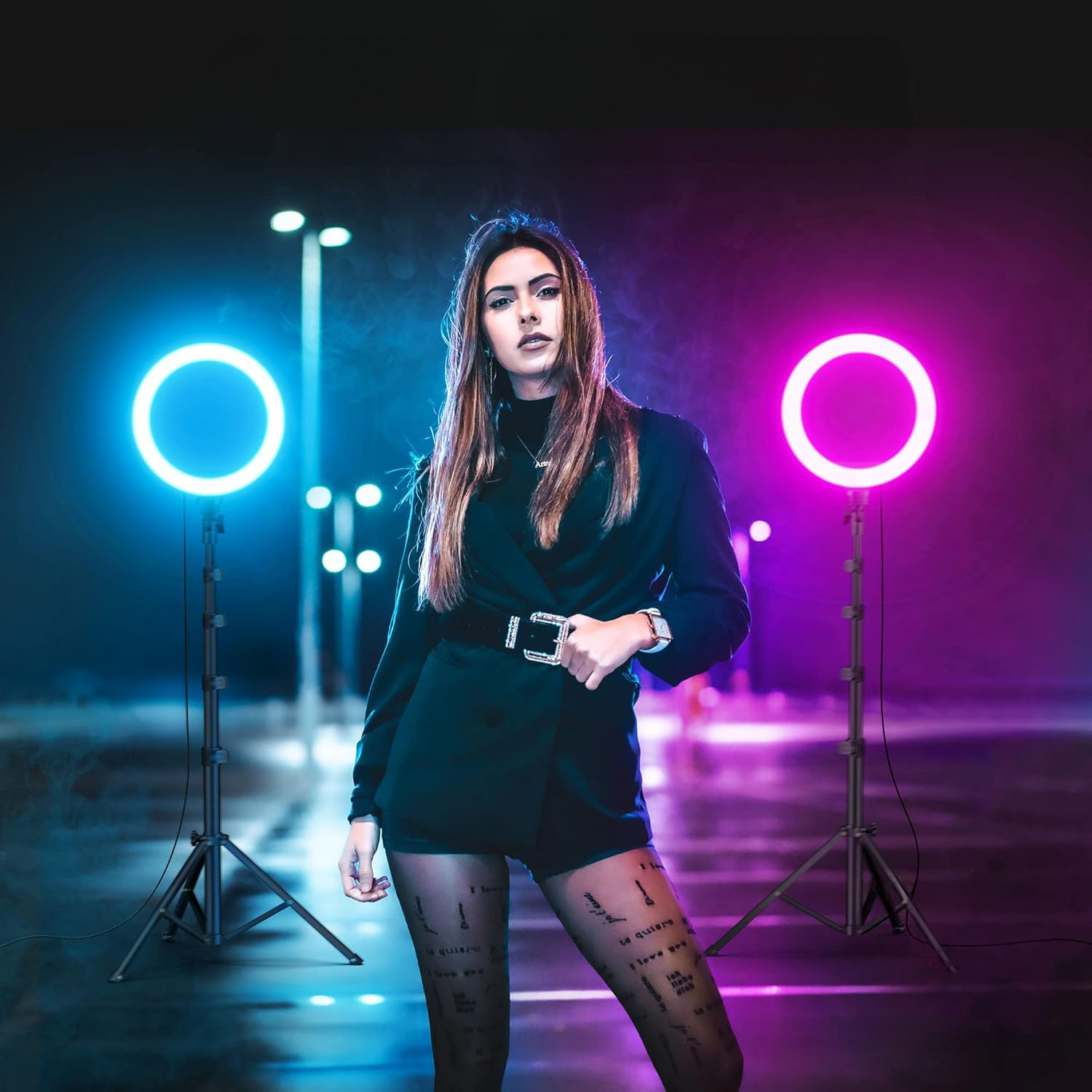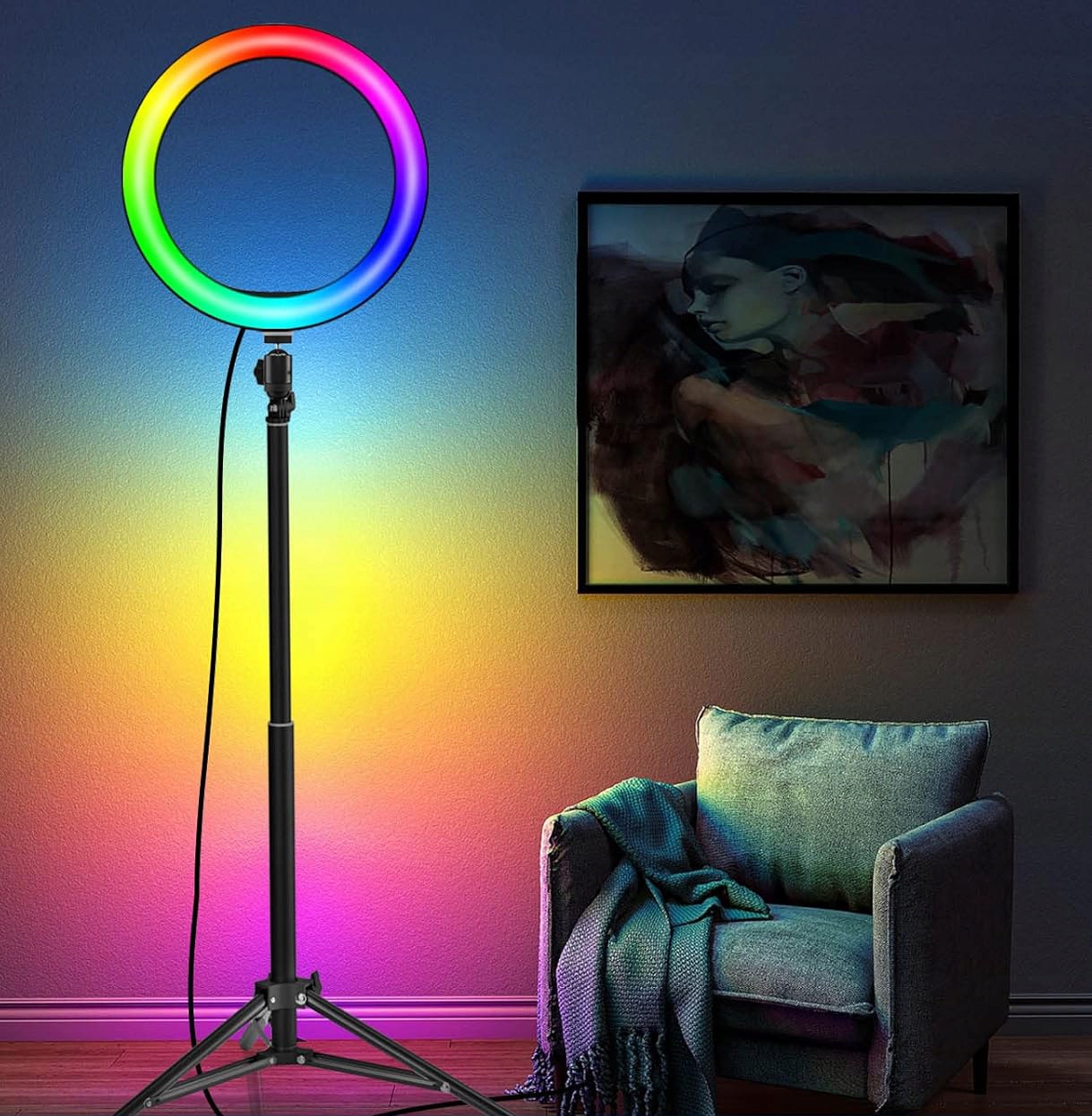 Современная светодиодная кольцевая лампа RGB диаметром 26 см — универсальный инструмент для создания контента на YouTube, TikTok, Instagram или во время прямых трансляций.