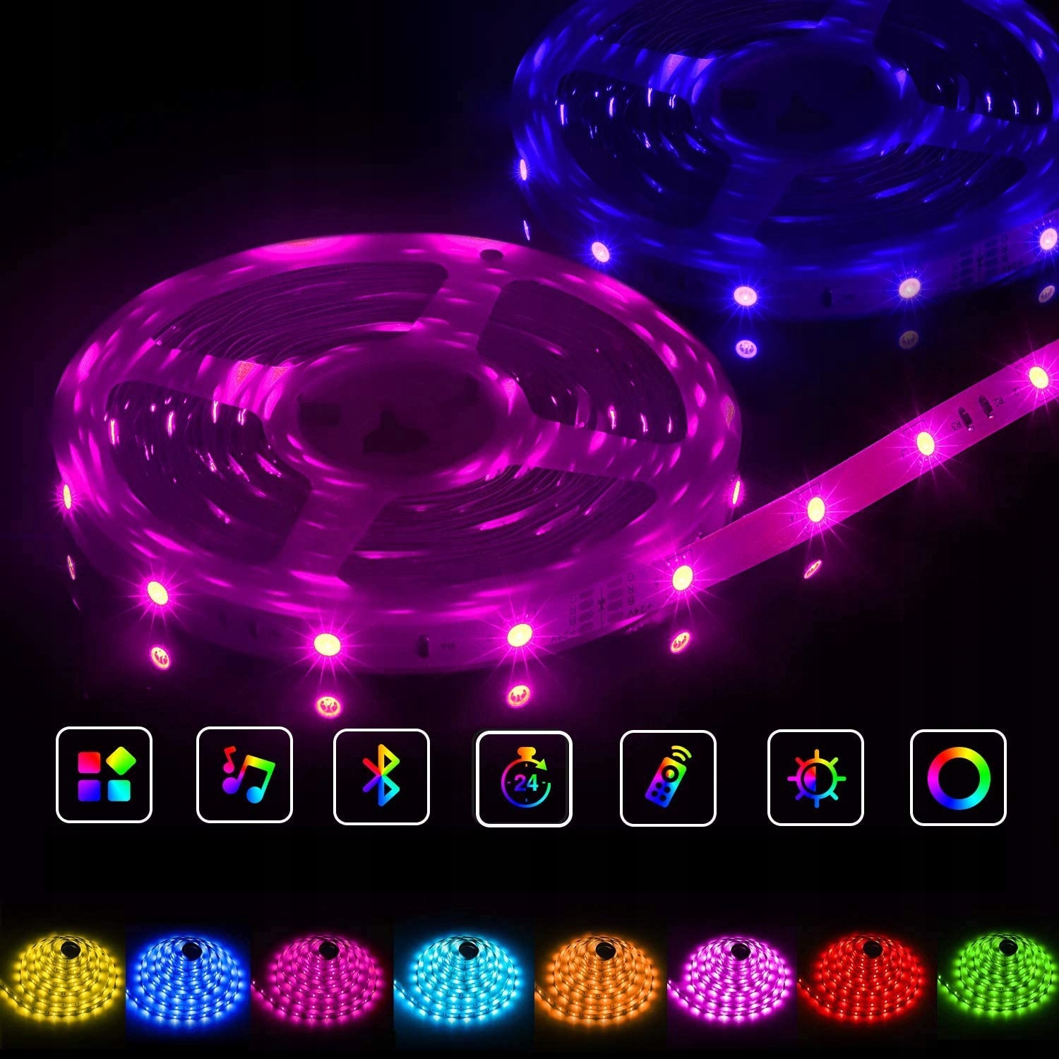 Длина: 6 метров Светодиоды: 108 светодиодов. Водонепроницаемость: нет. Тип цвета: RGB. Потребляемая мощность: 12 Вт. Напряжение: постоянный ток/12 В. Люмен: 20–22 лм на светодиод. Комплект поставки: Пульт дистанционного управления, приложение.