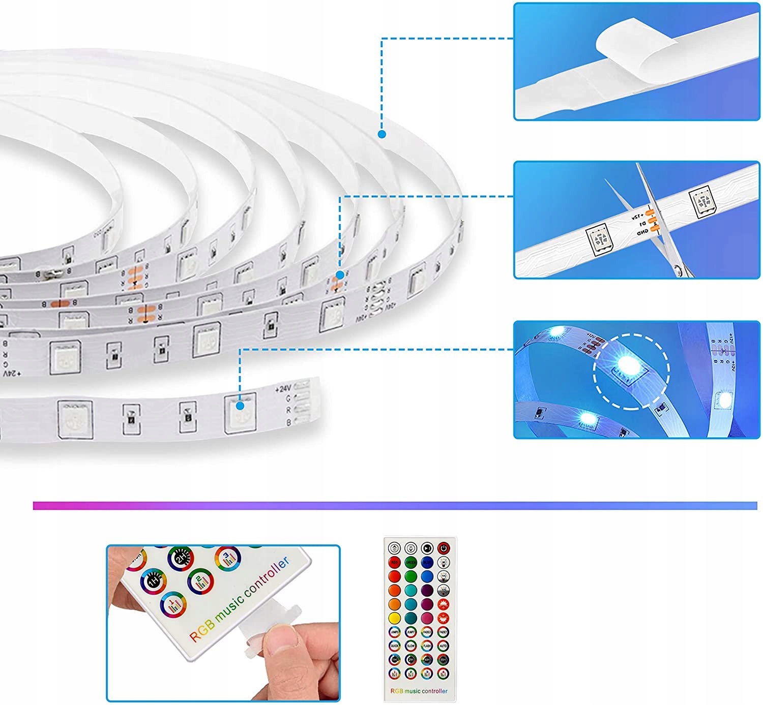Светодиодная лента легкая и легко сгибается. ① Светодиодная лента имеет высокопрочный клей, который позволяет легко приклеить ее к любой чистой, сухой и гладкой поверхности. ② Светодиодные ленты имеют функцию памяти. ③ Светодиодная лента обеспечивает гибкое использование вдоль маркировки резки. ④ Вы можете управлять несколькими светодиодными лентами или создать группу из всех светодиодных лент и управлять ими с помощью приложения.