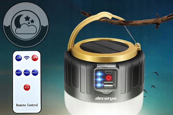 🏕️ Туристический светодиодный светильник с павербанком, пультом дистанционного управления и солнечной батареей от Decorya