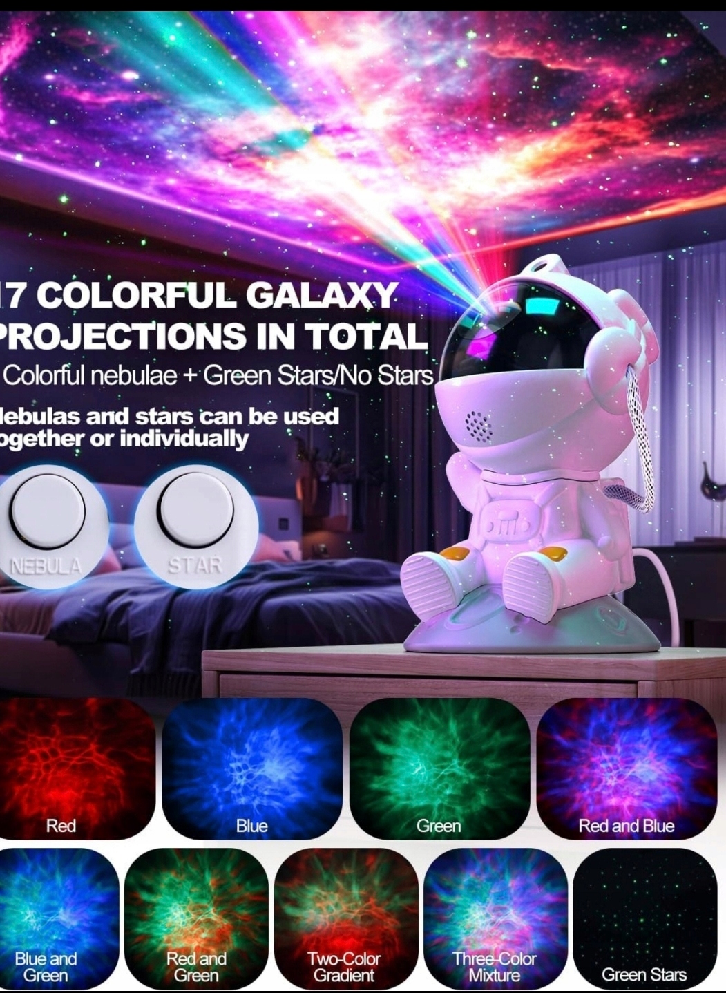 Привет! Предлагаем необычный звездный проектор в виде космонавта. Этот инновационный продукт позволит вам создать волшебную атмосферу и привнести неповторимое настроение в вашу комнату, гостиную или другое пространство.