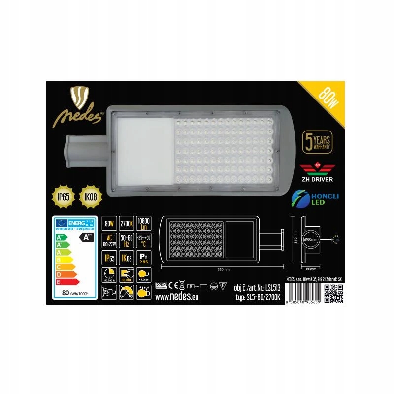 Светодиодная уличная лампа 80W 2700K LSL513 h2>
