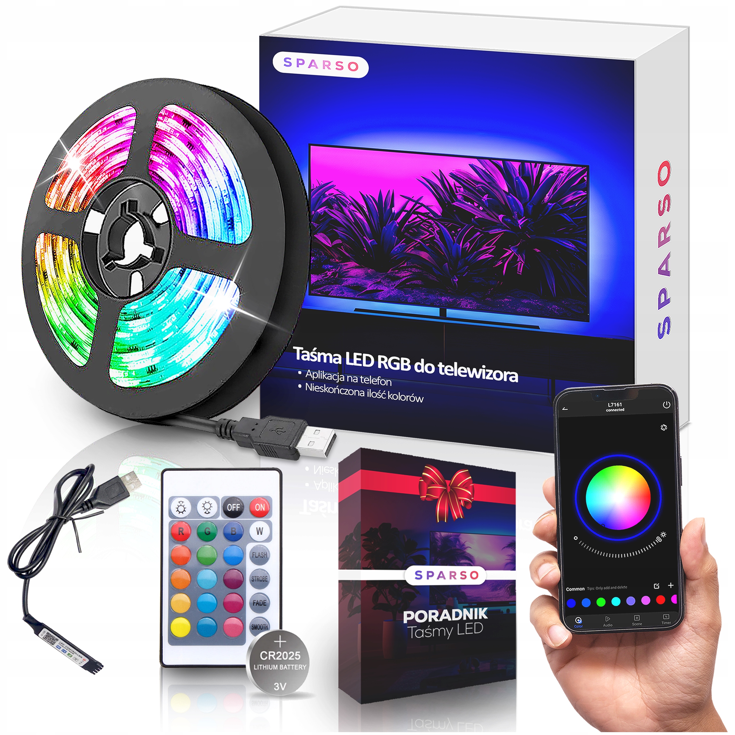 LED STRIP 5M RGB USB 5050 Підсвічування для ТВ LEDS Пульт ДУ НАБІР ДОСЛІДЖЕНЬ