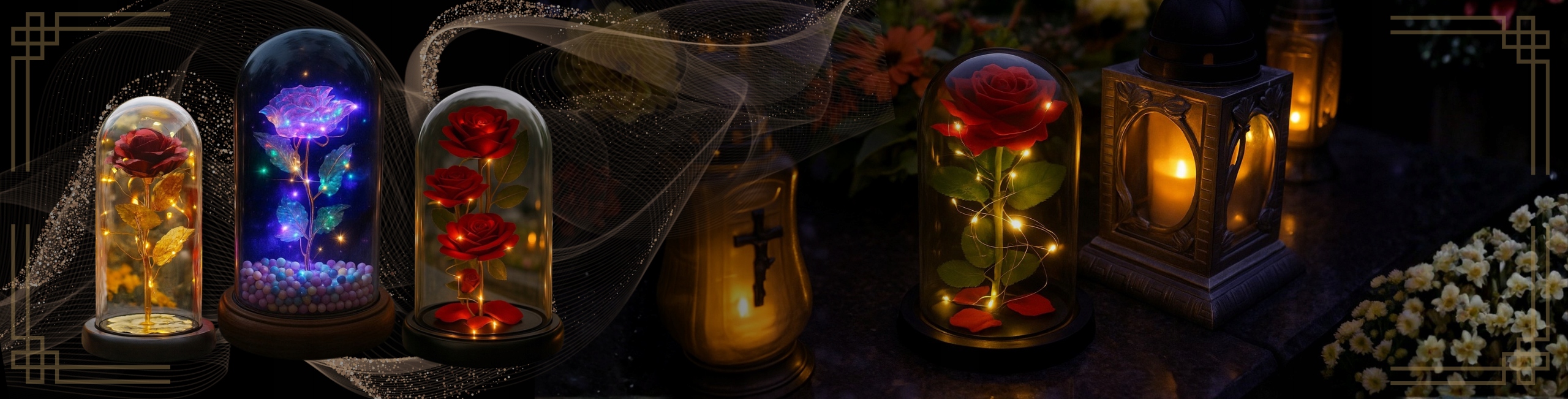 Предлагаем уникальную Eternal Rose в стекле - элегантную свечу с цветком и светодиодную подсветку. Он не вянет, не требует ухода, а его теплое сияние создает атмосферу памяти и любви. Идеально подходит для могилы близкого человека или в качестве символического подарка.
