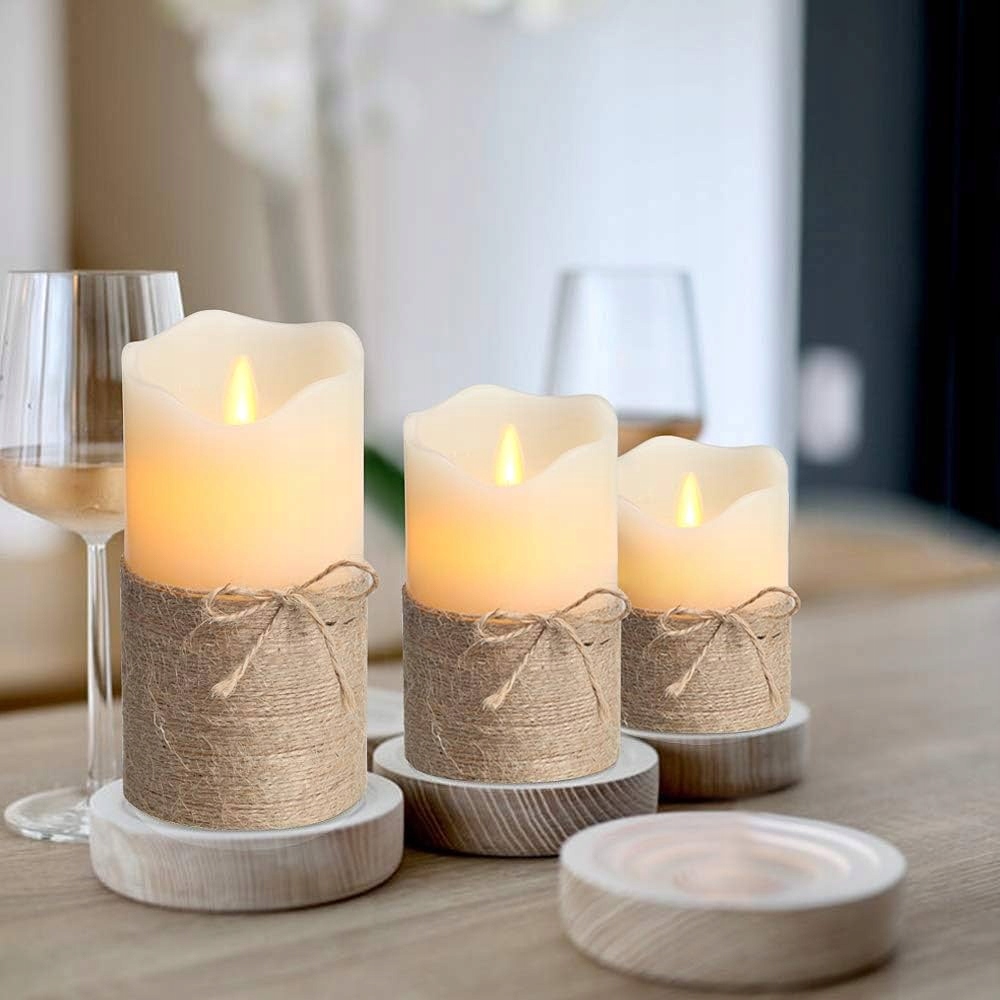 Набор из 3-х декоративных свечей с фиксированным мигающим фитилем, имитирующим настоящее пламя с помощью светодиода. Свечу можно использовать как вставку для традиционных свечей. Он светится гораздо дольше обычных вставок и устойчив к ветру, что является дополнительным преимуществом.
