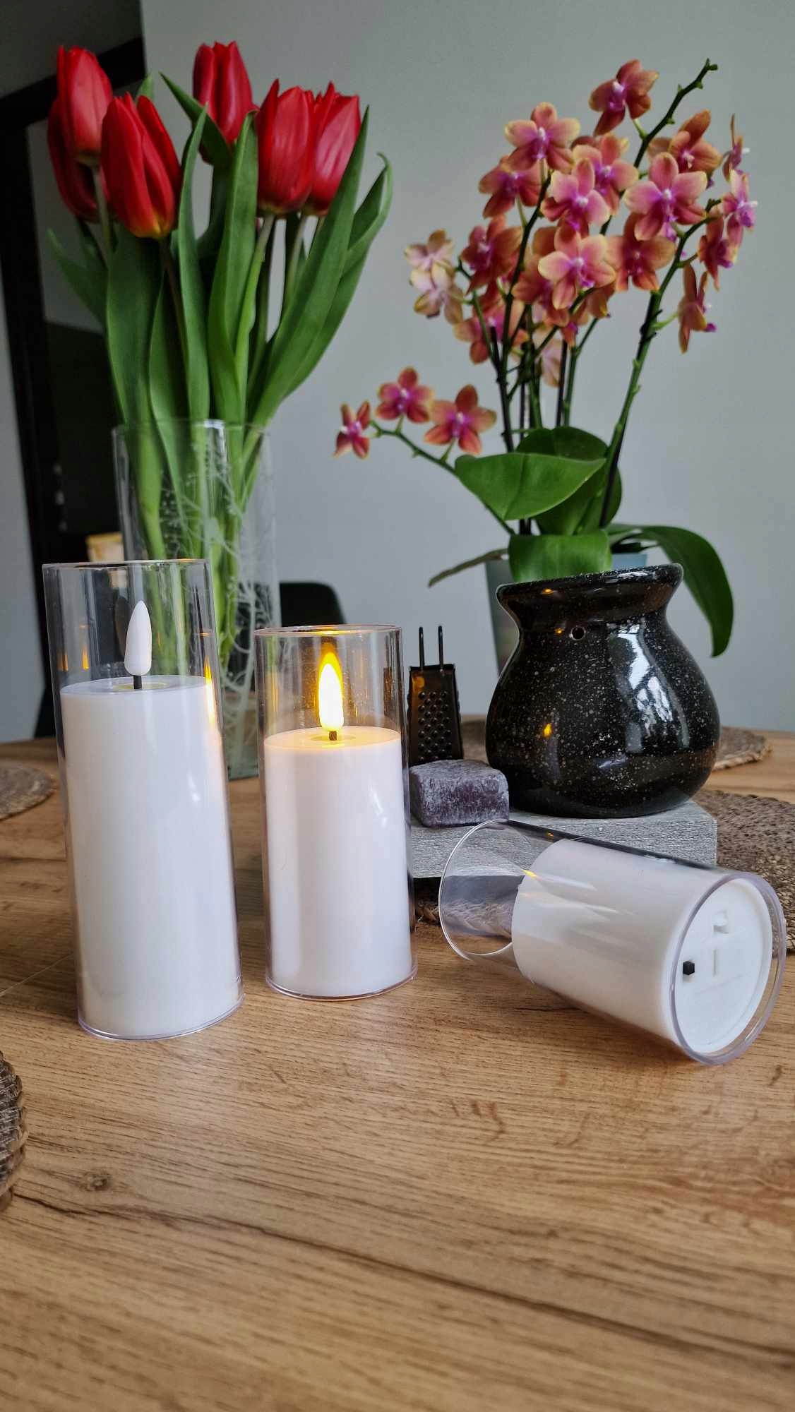 (на этот раз свеча в прозрачном стекле, цвет свечи, после зажигания становится слегка желтоватым, напоминающим цвет воска, свеча уже в комплекте с батарейками)